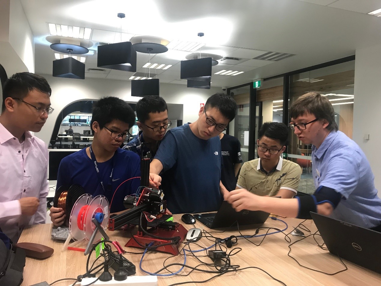 专业学习分为实验和参观两个部分,实验部分分为三个阶段,分别对应大一、大二、大三的课程,采用全英文授课,由老师进行讲解,由浅入深帮助学生完成实验。实验期间,交流团成员学习了电路焊接课程,信号的编码和译码过程,电吉他的学习编程实现以及3D打印技术的学习等。在学习3D打印的过程中我们学会了如何使用软件去设计作品,并最终打印出了自己的作品。实验过程中,老师为同学准备实验教材和用具,遇到不懂的问题也会耐心为讲解,所以即便是全英文授课,同学们也顺利的完成了实验。交流团的同学们还使用了电路焊接烤炉,切身体会到烤炉和传统电路焊接的异同,在丰富多彩的实验帮助下,我们充实了自身的专业知识,并提高了自己的实践能力。
