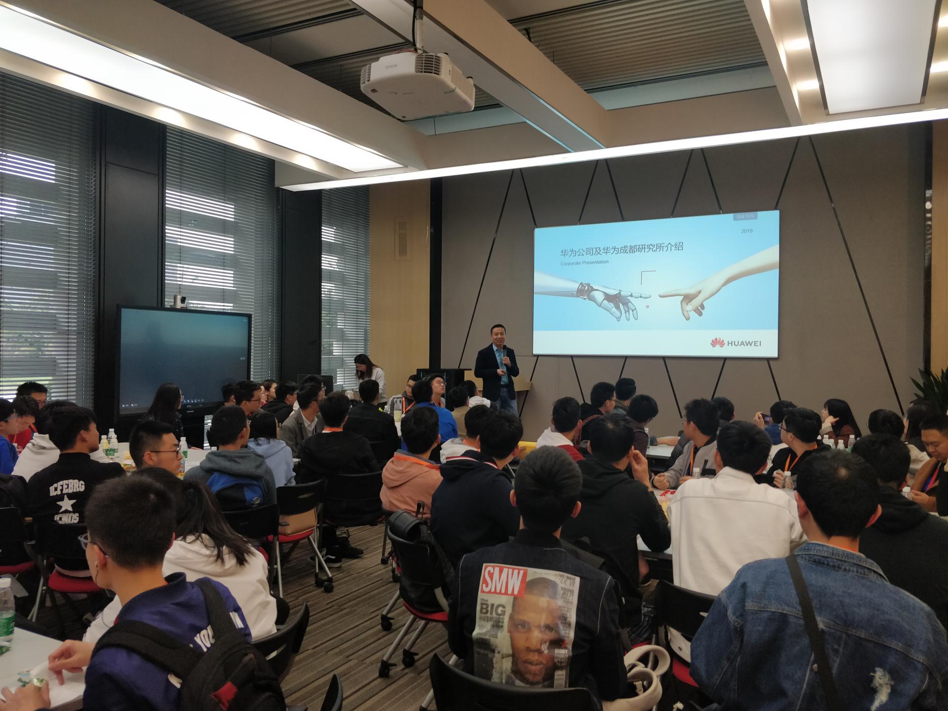 为了让同学们对华为有准确认识,精准定位,工作人员向同学们介绍了华为的概况:即华为公司是全球领先的电信解决方案供应商,其业务涵盖了移动、宽带、IP、光网络、电信增值业务和终端等领域,致力于提供全IP融合解决方案,主要做传送、存储和海思芯片开发。