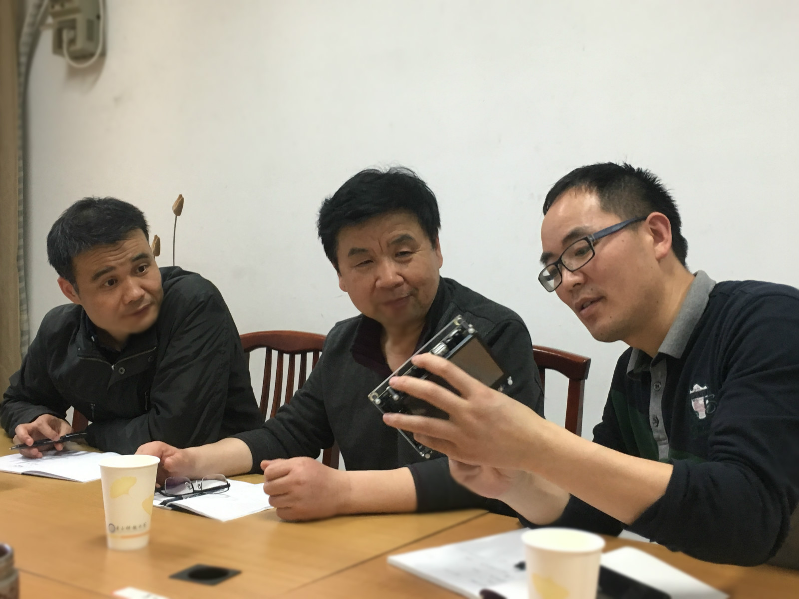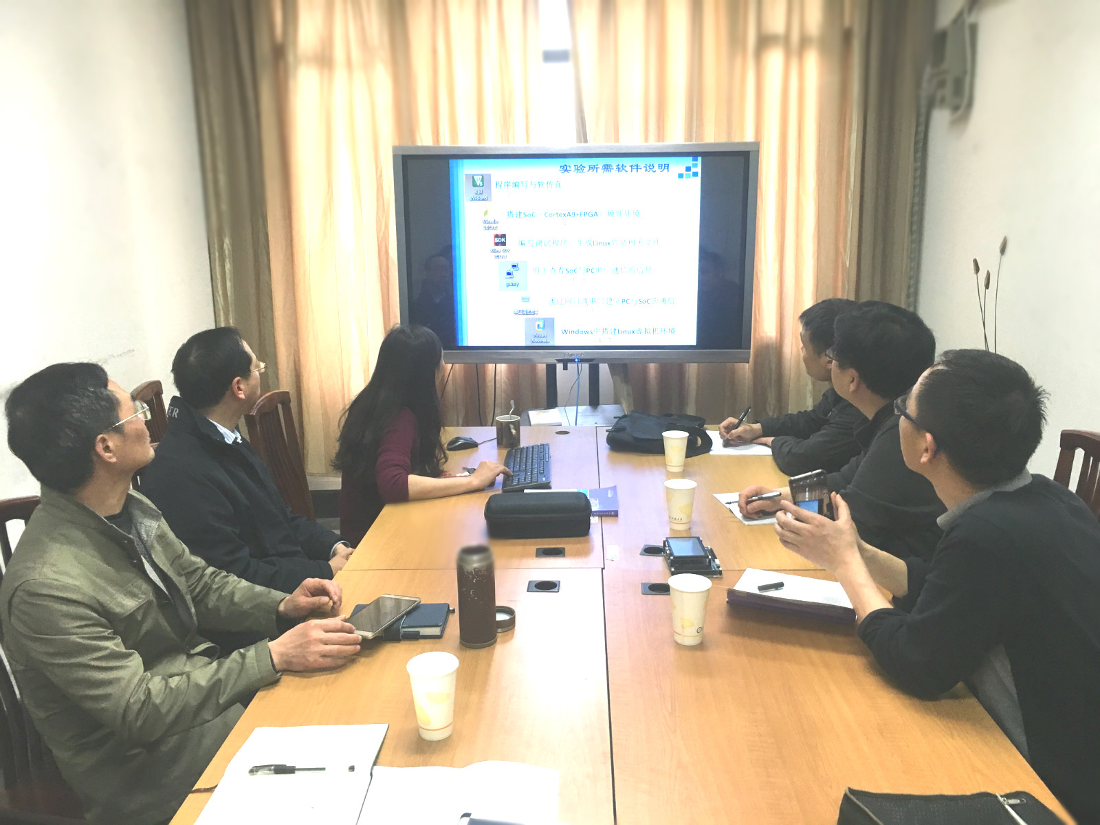 阎波首先介绍了我院“微处理器与嵌入式系统”课程以及相关课程“数字逻辑电路与系统”、“ASIC设计”的建设思路与授课内容,同时结合已上线的MOOC课程和正在开展的教学模式及考核方式改革详细介绍了该课程三种不同的教学形式(大班授课、探究式小班研讨课程、挑战性课程),对教材的内容建设及出版情况也作了详细的说明,林水生就实验室和实验平台的建设、实验项目资源建设向三位老师作了汇报,凌翔介绍了我院信息与通信大类教学体系和课程改革的思路和取得的初步的成果。