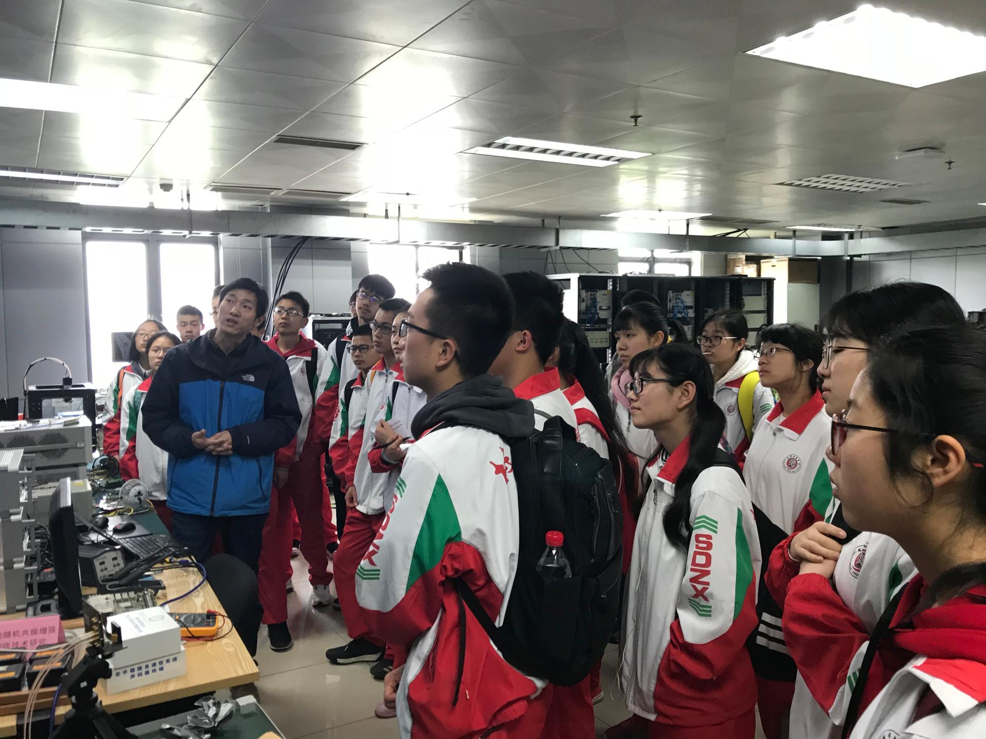 上午9时,树德中学师生准时来到清水河校区,首先来到通信抗干扰技术国家级重点实验室参观,实验室邹显炳老师用质朴的语言为同学们描述了一场通信技术变革的历史:从2G时代的追赶,3G4G时代的跟随,到5G时代的引领,一代又一代科学家和工程师们做出了非常大的努力。在听到抗干扰实验室与华为合作研制的短码标准成为国际标准的时候,学生们深深地为我国的科技力量所折服。