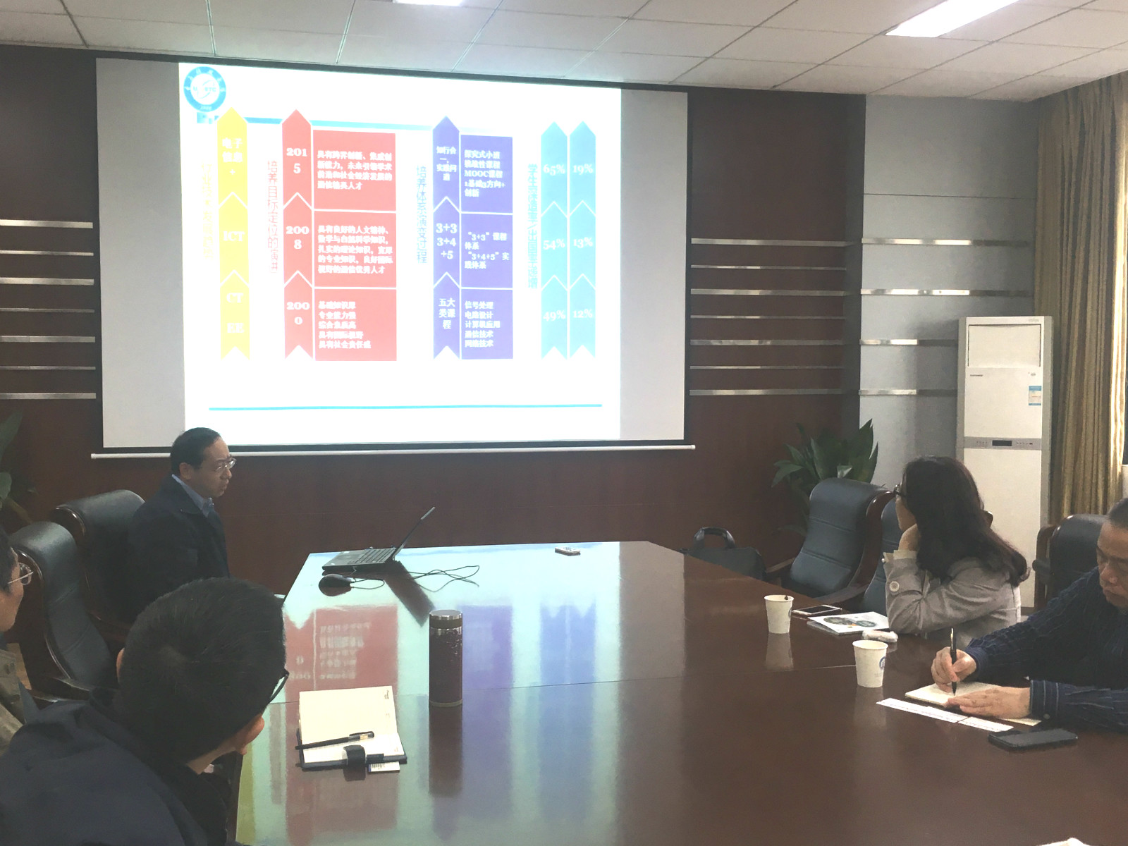 汇报结束后,双方就具体问题展开了讨论,尤其是在如何调动教师参与教学研究和改革层面上的积极性、以及研究生的过程管理和动态淘汰机制上做了深入的研讨。