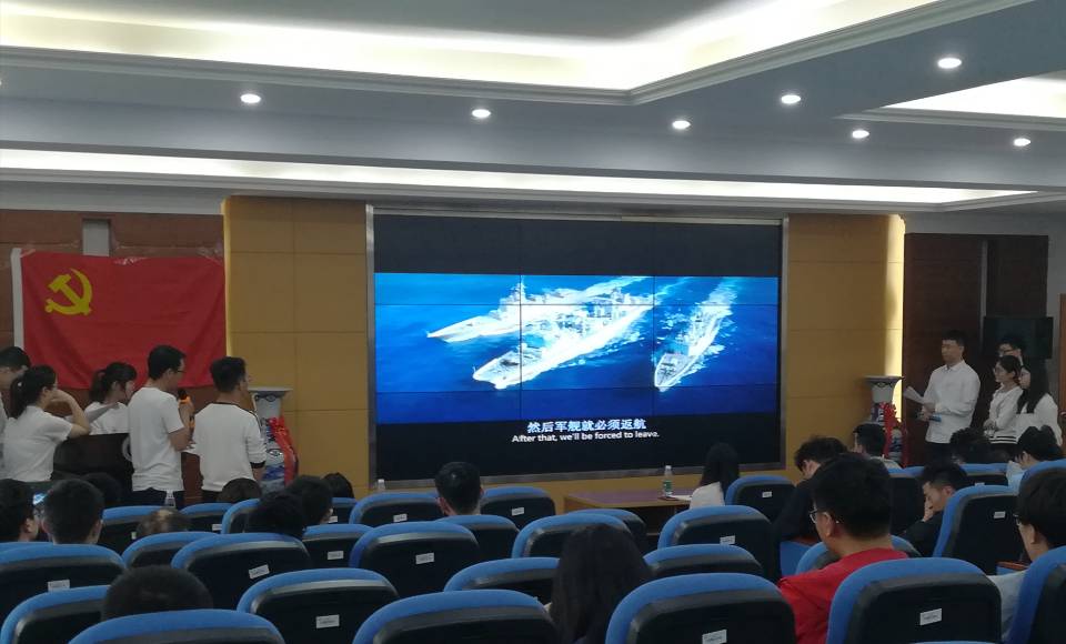 比赛结束后,由江倩老师为此次配音大赛致辞。她对为参加本次比赛而认真准备的同学们表示感谢,鼓励同学们能够多参加此类课外活动,自信的表达和展示自己的爱国情怀。希望今后每个人能够把发展对象培训作为追求政治信仰的新的起点,自我加强理论修养,坚定理想信念一辈子。像习总书记说的一样,读原著、学原文、悟原理,往深里走、往实里走、往心里走,小我融入大我,在今后工作学习中更加努力更加踏实,脚踏实地,仰望星空。最后江倩老师借配音作品《战狼2》的一句话送给同学们:你们怎样,中国便会怎样;你们阳光中国也会灿烂。