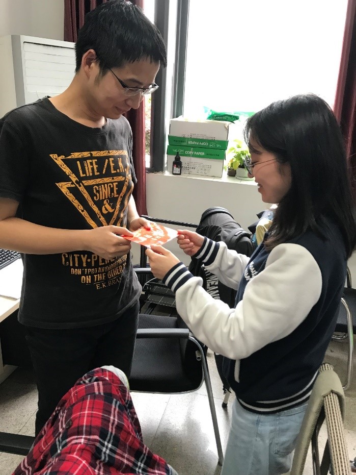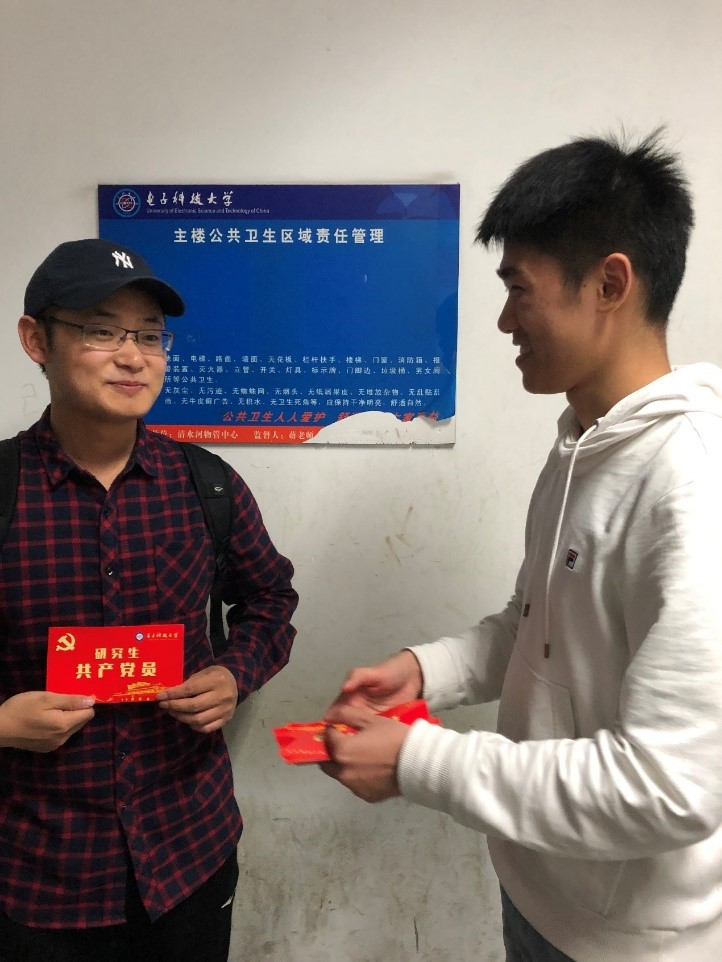 活动中,各个学生党支部书记来到教研室,在每一位党员的工位上张贴“研究生共产党员”标识。接过“研究生共产党员”牌子,党员同志们感到非常高兴和自豪。纷纷表示,今后一定更加严格要求自己,不断提高自身政治素养,牢记党员身份,踏实进取、认真谨慎,忠于职守,遵纪守法、廉洁自律,努力发挥党员的先锋模范作用,树立大局意识、服务意识、使命意识,努力做到全心全意为人民服务的宗旨。