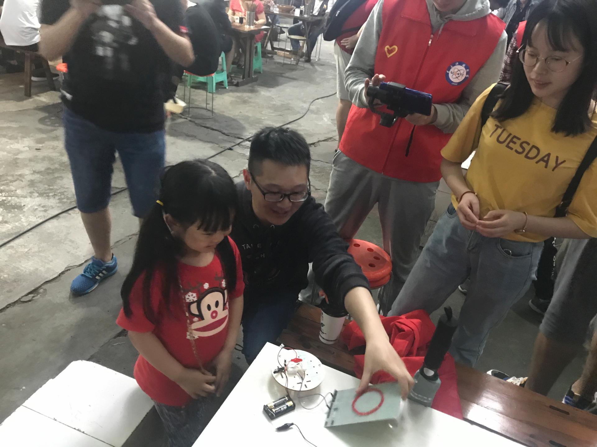 除DIY电路、避障小车之外,还有一些自制DIY小灯、温度传感器等原理较为简单并且现象较为明显、激发小朋友对科学知识兴趣的电子实验产品,在现场供小朋友做简易实验。
