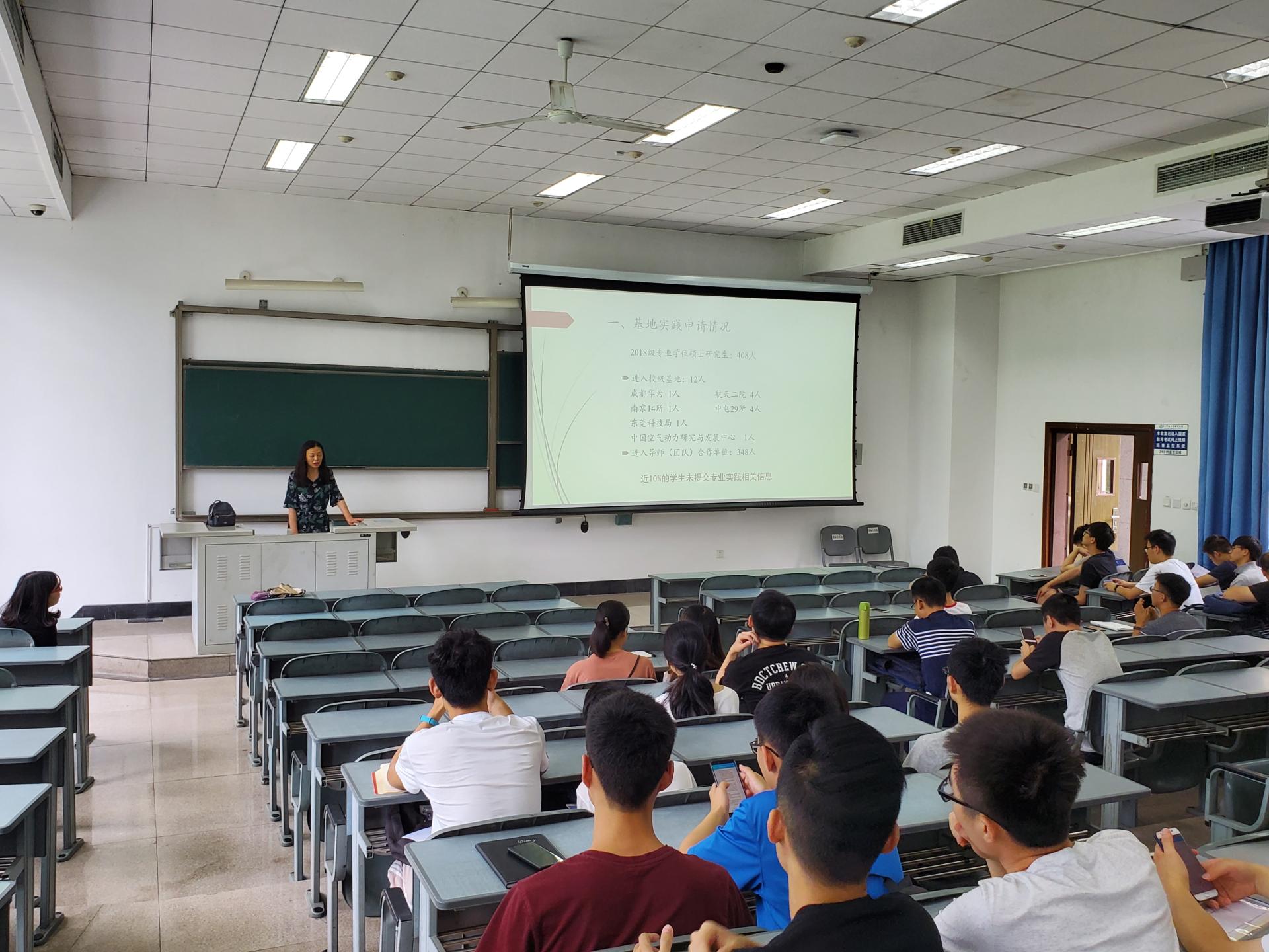 随后,研究生科张晓霞老师对目前的基地实践申请情况做了简要介绍,基地实践主要包括校级基地实践和外校企业组织的校外实践,同时针对同学们提出的问题做了详细解答。张老师提到:基地实践是提前接触社会的最好机会,希望同学们认真对待,在向企业展现良好工作面貌的同时更要注意安全,做好实践后的整理工作等。