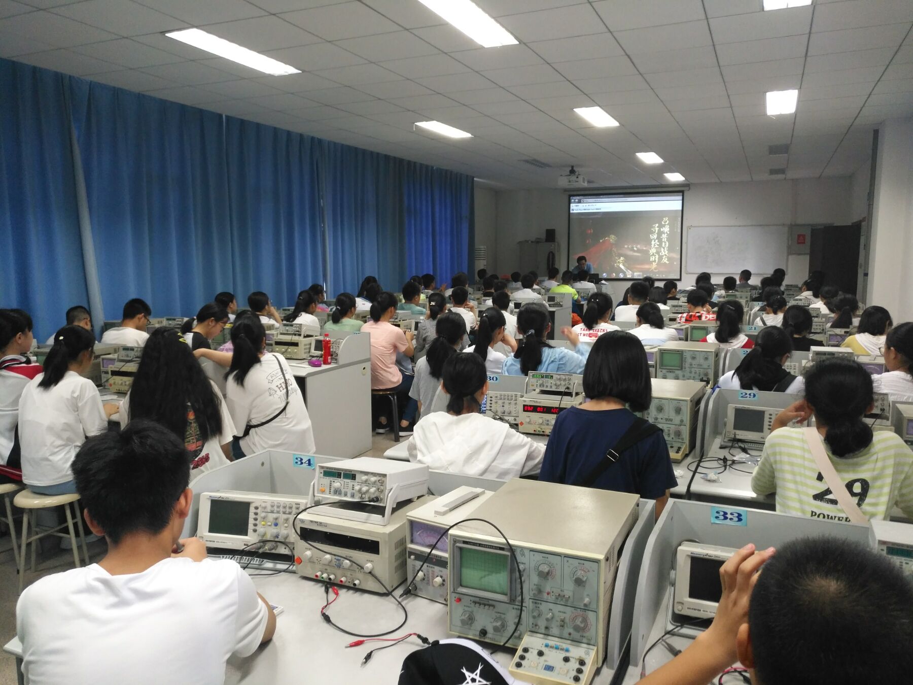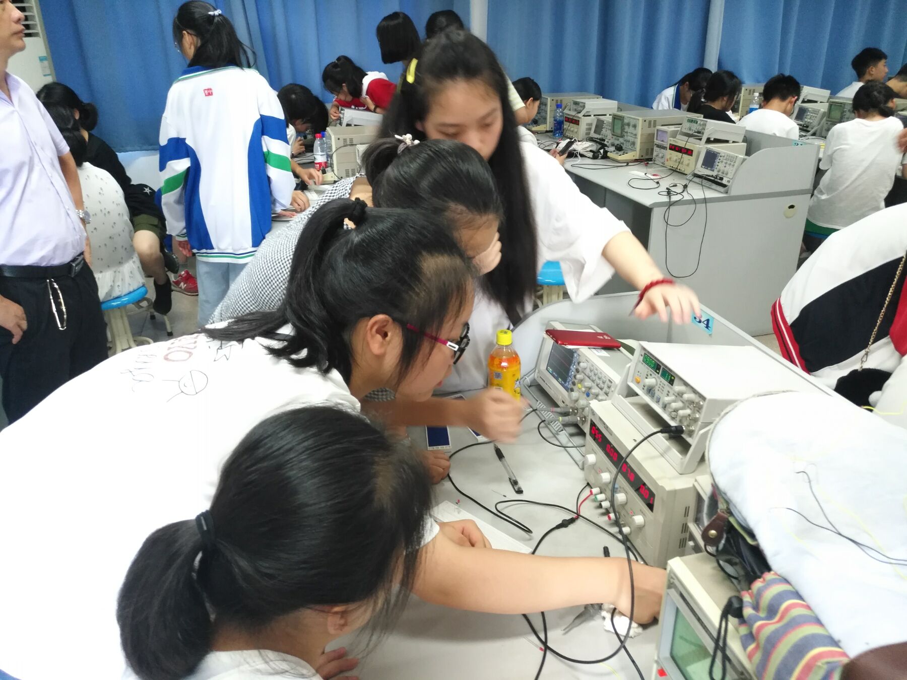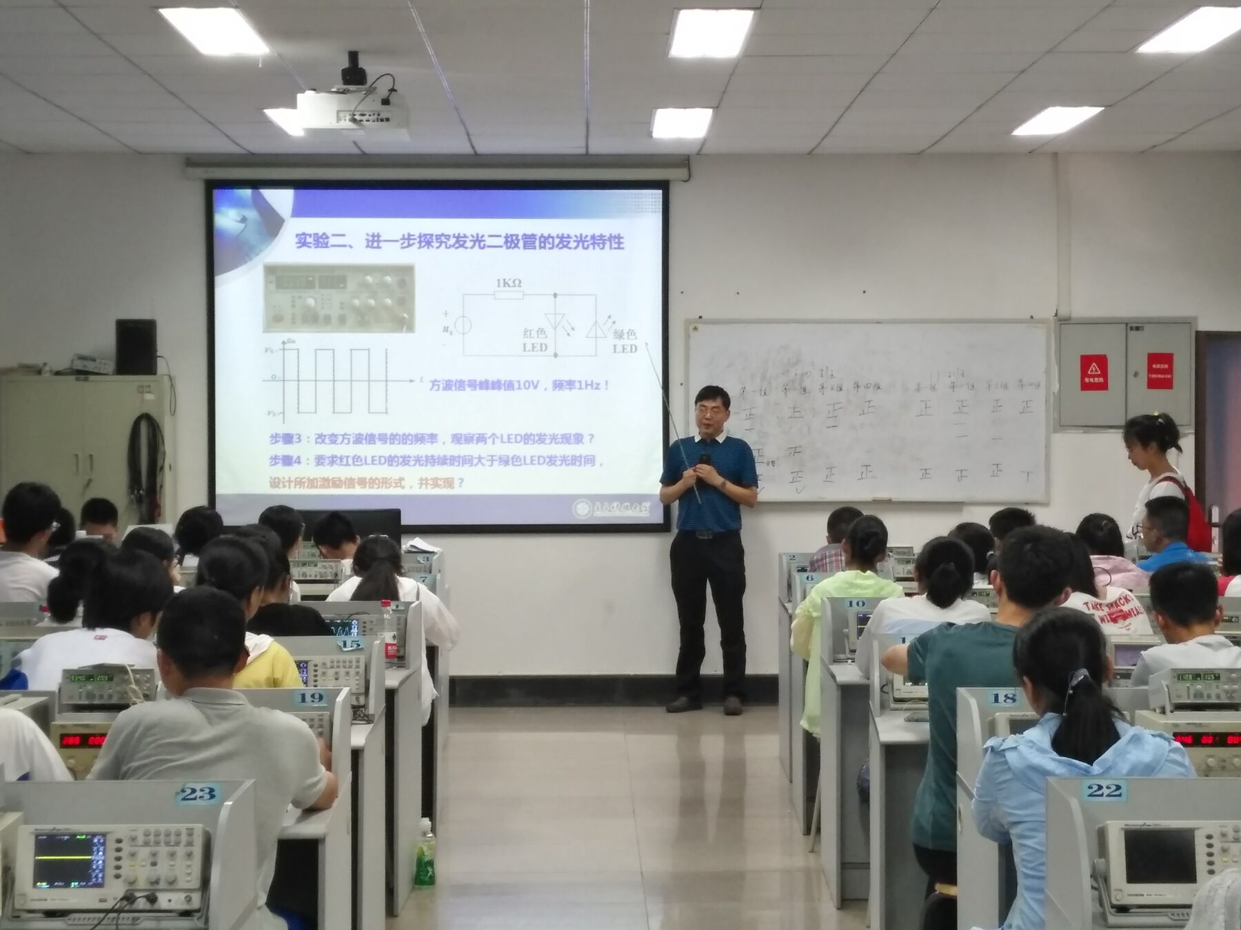 最后,通过一天的“常用电子测量仪器的使用”、“二极管的使用“两个实验,让同学们了解到常用电子仪器及二极管的使用方法,同时也锻炼了同学们的动手能力,还提高了同学们的分析问题与解决问题的能力。