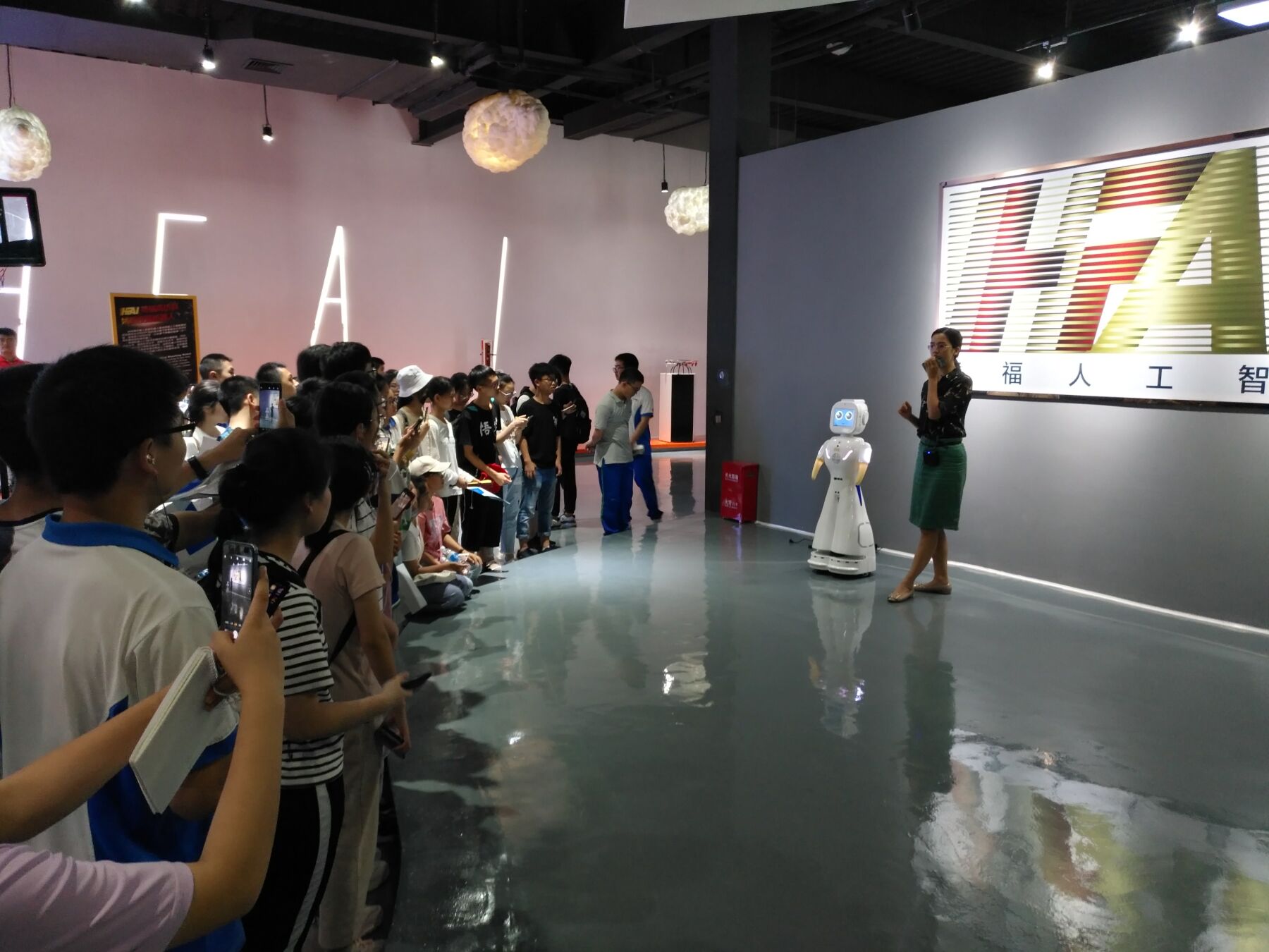 同学们还参观了我校图书馆、电子博物馆、机器人中心,与机器人中心的智能机器人“小福”进行了深度的沟通交流、与羽毛球机器人进行了“切磋”,直观感受了智能机器人带来的各种便利生活。