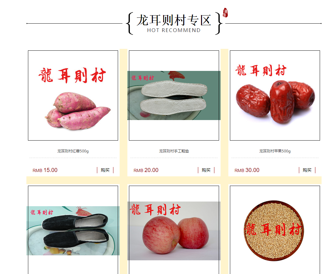 为增加“专柜”的销售额,队员深入思考,形成了“硬实力”和“软文化”两条腿走路的发展构想。“硬实力”即是龙耳则村农产品的绿色、原生态,工艺品的精巧、纯手工,经过跟村民的详细讨论,队员们决定第一期上架小米、苹果、芝麻、红薯、红枣、手工布鞋和手工鞋垫,“苹果都是我们亲手摘的,比你们大城市的甜哩”,这些都是村里最优质和成熟的产品。“软文化”即是通过宣传龙耳则的品牌故事,带动线上产品销售,实践期间,队员们与村民聊天了解,收集有关龙耳则村的品牌故事,构建了一整套的文化品牌体系,将其上传至淘宝店铺进行宣传,为龙耳则的产品赋予了文化灵魂。