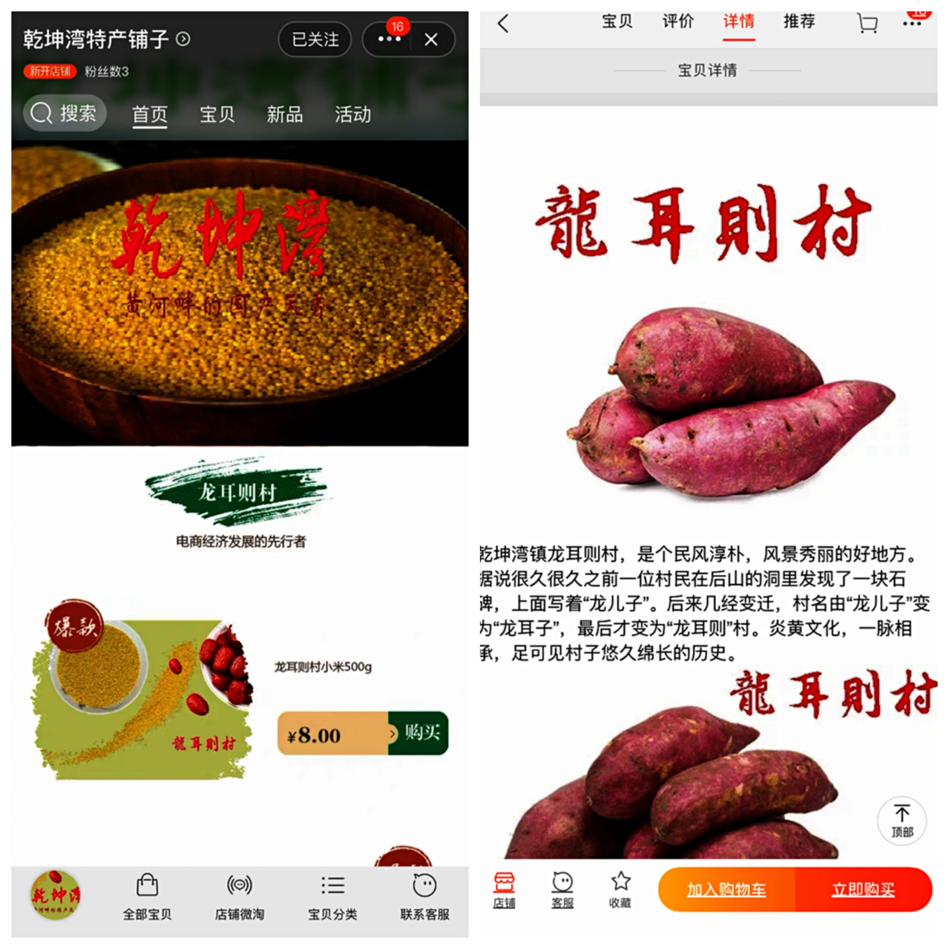 在民宿上线的实践基础上,队员们着手完善去年该实践队在乾坤湾镇建立的“乾坤湾特产铺子”淘宝店,将龙耳则村的农产品和手工艺品在店铺内设立“专柜”,实现集约化、精细化、高效化的线上销售。