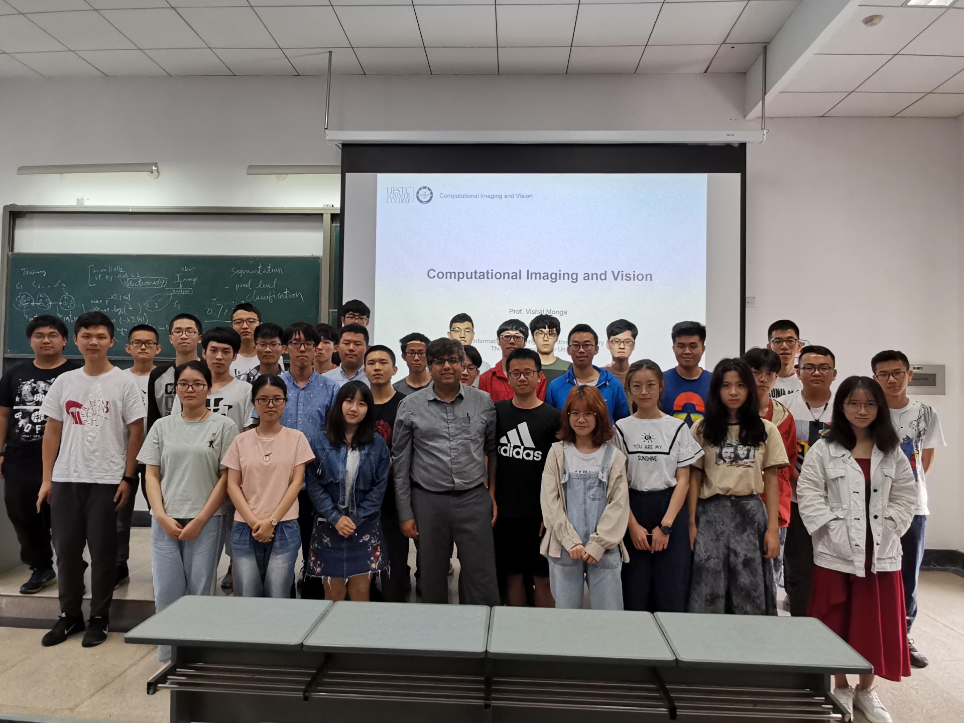 7月8日-12日,来自美国的Monga Vishal副教授为30余位同学讲授了“Computational Imaging and Vision(计算成像与视觉)”课程,Monga副教授为同学们详细介绍了现代计算成像与视觉方面具有代表性的一些研究课题,包含图像质量增强,彩色图像处理,图像超分辨,图像分类(例如:人脸识别,疾病诊断等),同时还介绍了基于传统模型与基于深度学习的成像与视觉技术。