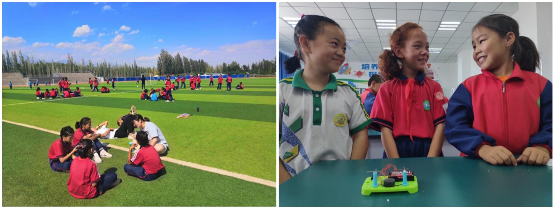在乘坐了将近40个小时的火车后,小新终于抵达新疆,来到学校的第一天,学校领导首先带领各位队员参观了校园环境,整洁的教学楼,设施先进的实验室,温馨的教室,还有老师学生们制作的各类手工艺品,都给队员们留下了深刻的印象。在大致了解学校环境后,学校领导和队员们开了夏令营启动会议,在会中,学校领导表达了对我们的感谢,同时,也为我们的教学安排提供了一些建议和帮助。在住进了学校领导早已安排好的宿舍后,队员们也根据校方需求和学生的实际情况,调整了教学科目与课时。