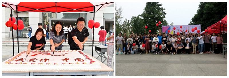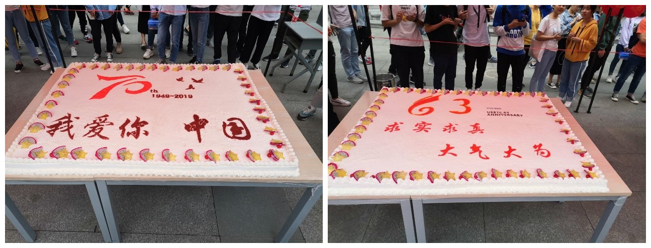 随后,william英国中文党委副书记杨晓玲老师与学生代表在庆祝新中国70华诞与成电63岁生日的两个大蛋糕上切下第一刀,早已有许多同学与老师在一旁有序等候,我们的祝福就这样随着蛋糕分享到每一个成电人的手中,甜进了每个人的心里。