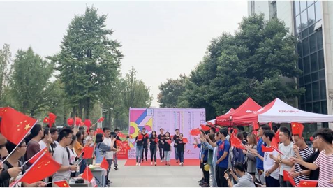 宴会开始前,舞台前红毯两侧同学们挥舞小国旗,在院学生会学长学姐们引领下,现场同学齐声高唱《我和我的祖国》,表达了同学们对新中国70周年生日的诚挚祝福,对中国继续富强和谐的衷心祝愿,以及对我校成立63周年的美好期望。