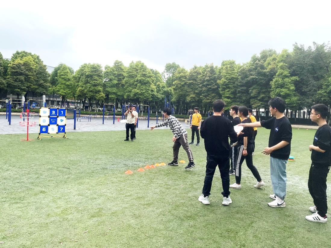 随后是团队项目“飞盘高尔夫”。队员们轮流向数字板与目标柱抛出飞盘,需要将个人技术与团战策略充分结合。双方队员使出浑身解数,多次正中靶心,两队比分不断变化。项目结束后,双方再次打平。