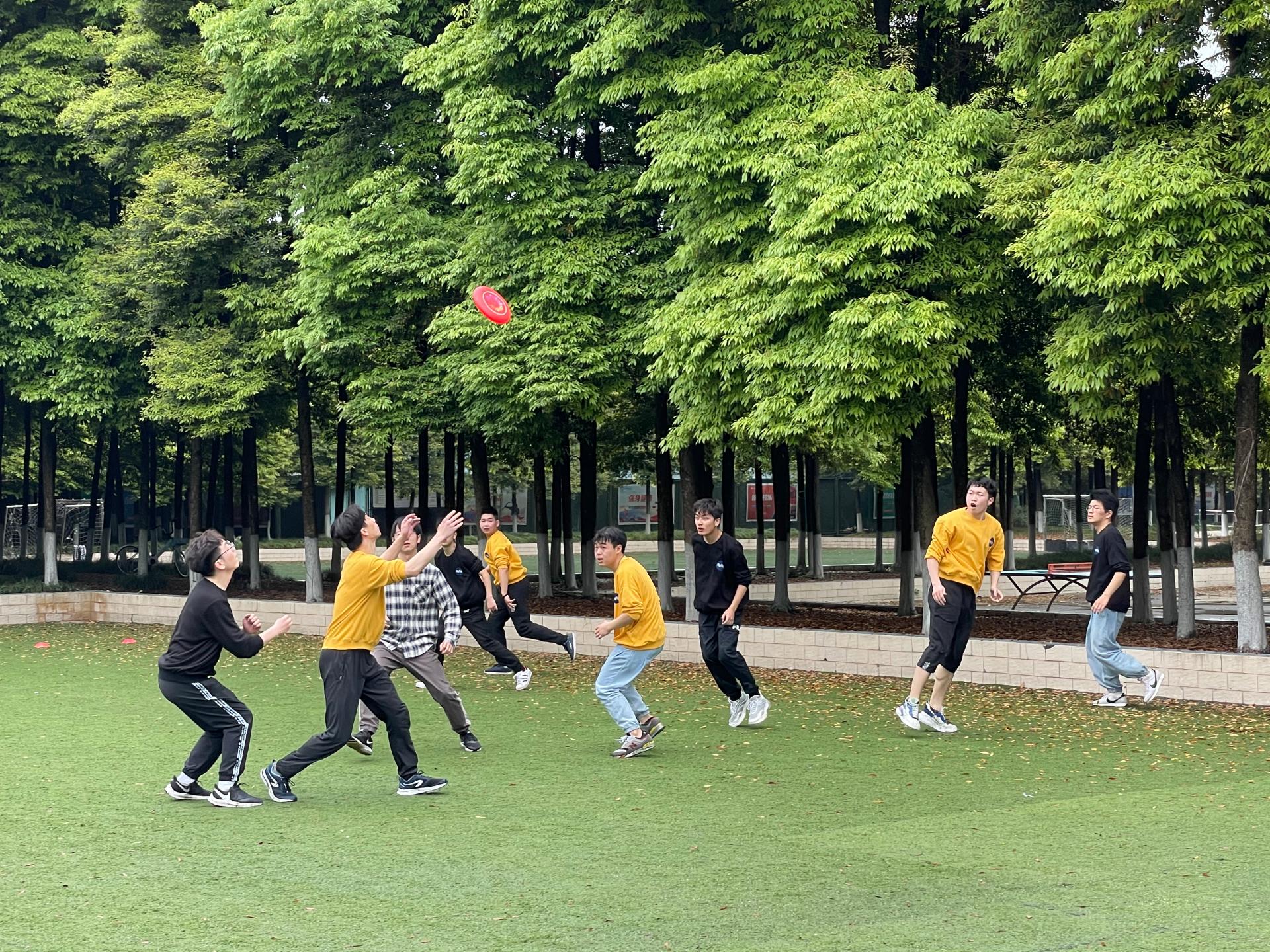 午后一时许,同学们身着“壹系壹班”班服陆续到达场地。起初拿起飞盘显得十分生疏,抛出便“上天入地”,轨迹变幻莫测。两两一组互相练习后,逐渐形成默契,可以潇洒而准确地进行抛接。