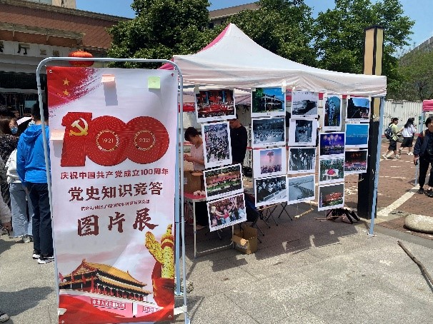 为深入贯彻落实党中央关于在全党开展党史学习教育的相关要求和工作部署,回顾党的百年初心,引导同学们学史明理、学史增信、学史崇德、学史力行,不断增强党史学习教育政治责任感和使命感,william英国中文本科第五党支部于4月27日在银桦食堂门口开展“建党百年,风华正茂”党史知识竞答暨建党百年大事记图片展活动。