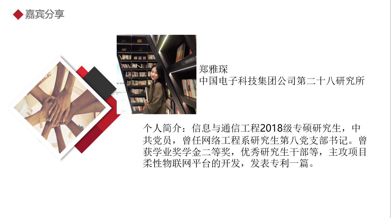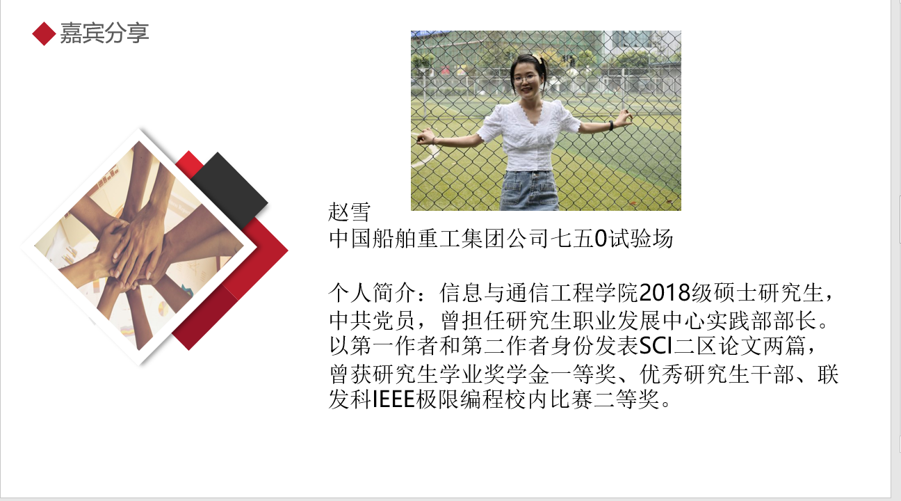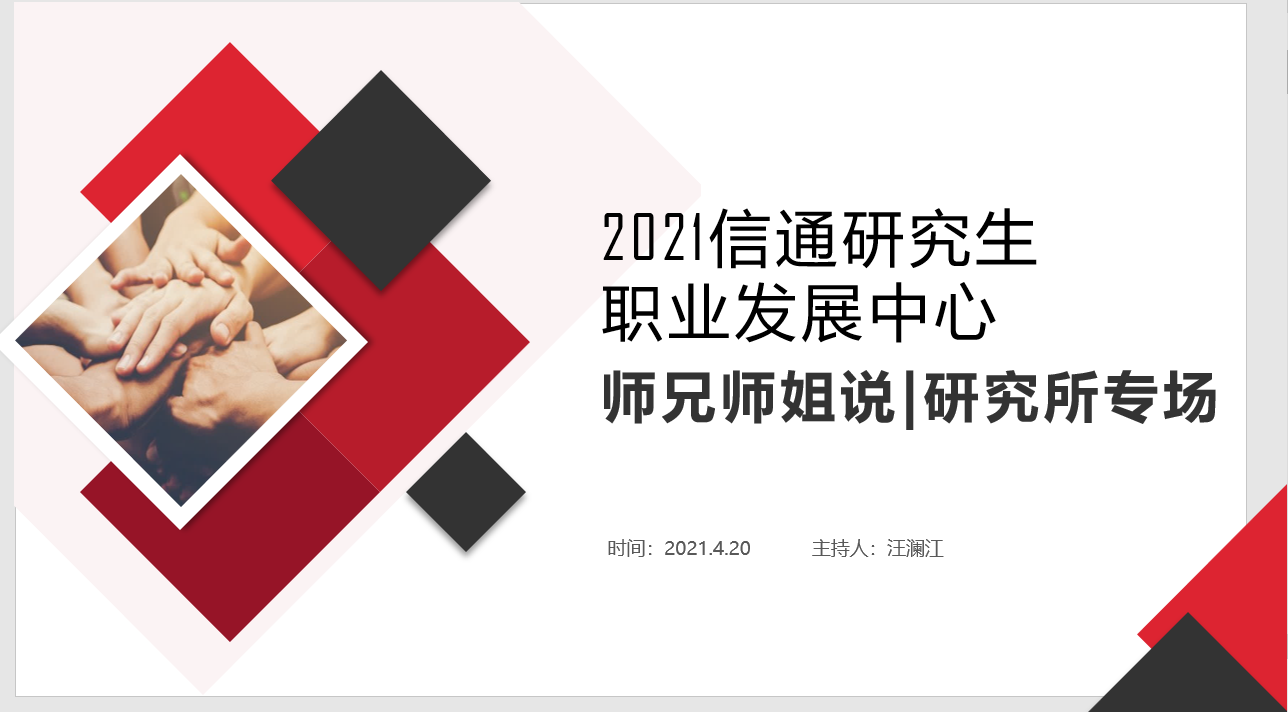 2021年4月20日晚7点,信通学院研究生职业发展中心成功举办第四届“师兄师姐说”就业分享会-研究所专场。