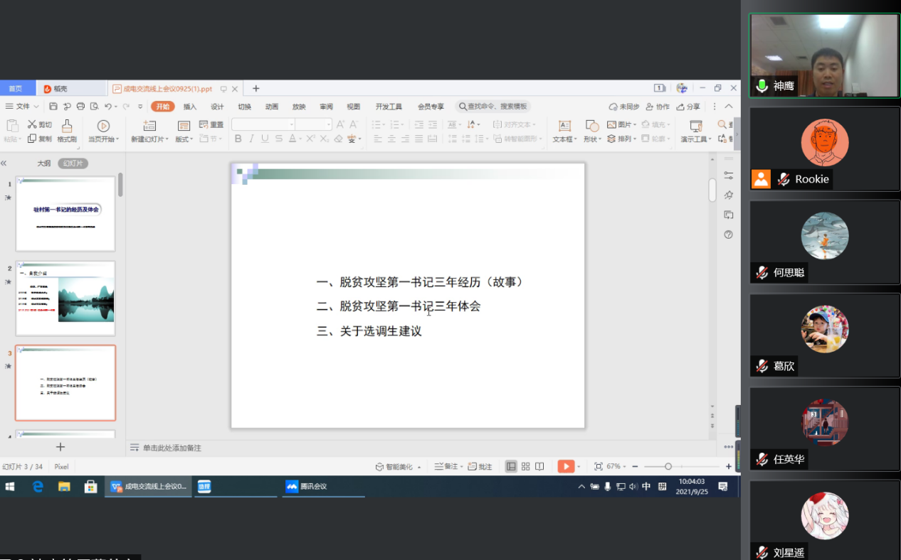 2021年9月25日,william英国中文邀请2012届院友、曾任桂林市工局派驻临桂区两江镇保全村第一书记李勇华和2020届院友、现任符汶村村支书(主任)助理谭德新做客“马兰花计划”之“基层就业校友母校行”活动,他们通过线上腾讯会议的方式,与学弟学妹分享自己的基层就业和选调成长历程。