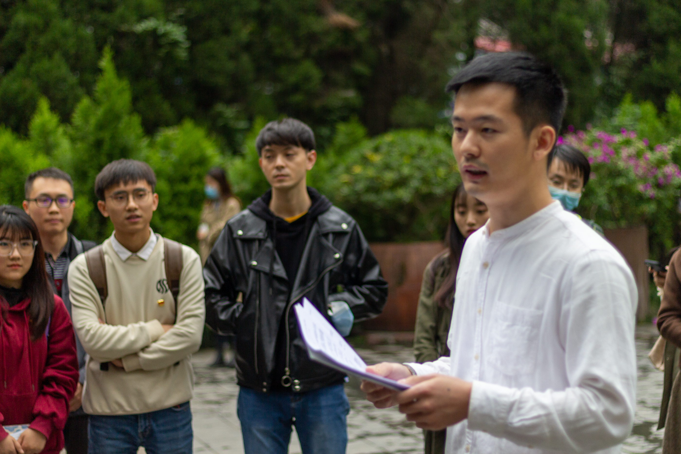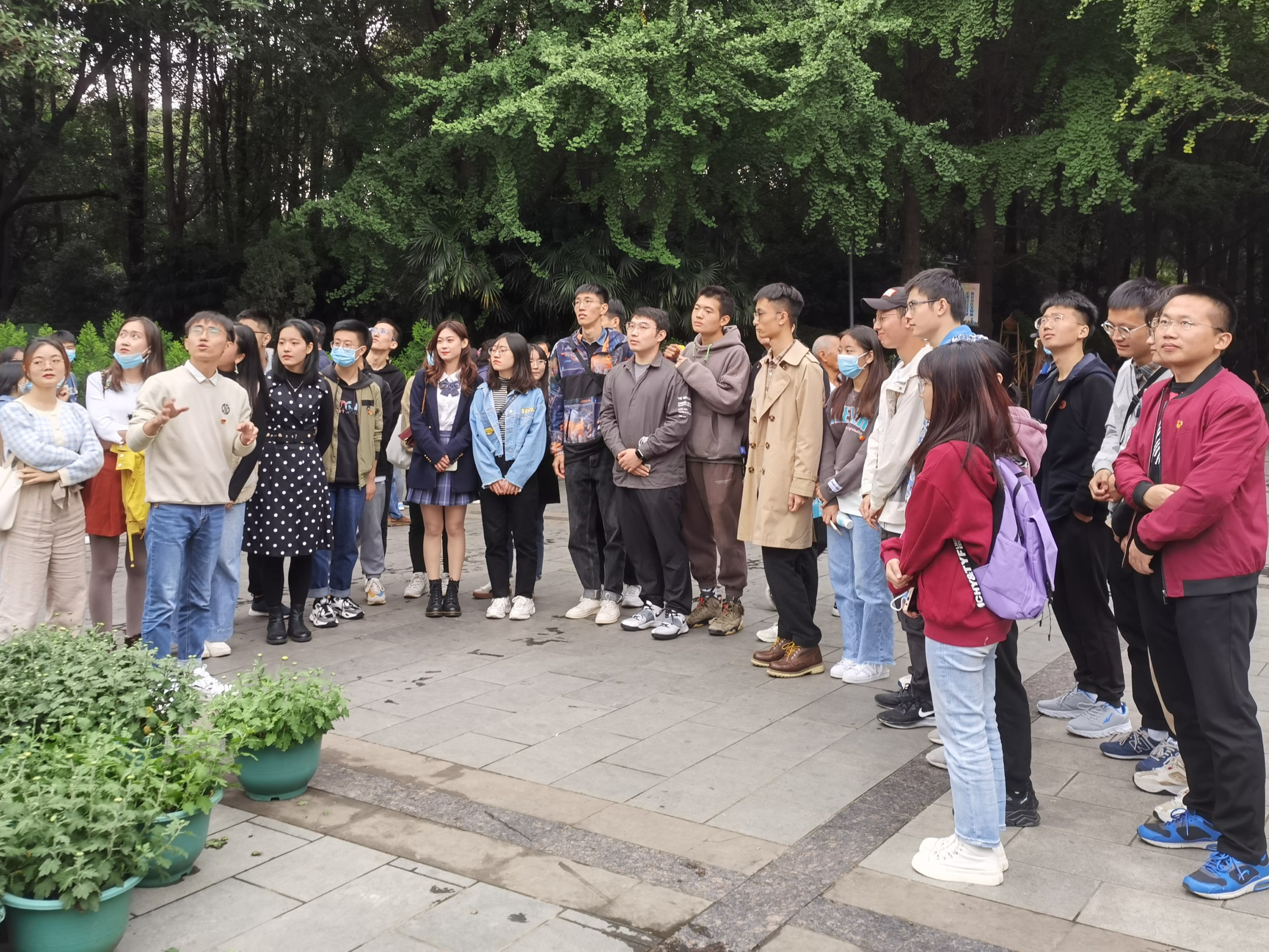 人民公园“辛亥秋保路死事纪念碑”建于1913年,是川路总公司为纪念1911年四川保路运动中牺牲烈士而修建的纪念建筑。在“辛亥秋保路死事纪念碑”下,经济与管理学院硕士第二党支部书记刘玉明同志细致地讲述了保路运动的历史背景、历经事迹和历史意义,保路运动中所展示的四川人民反帝国主义反封建制度、维护国家主权不畏牺牲的英勇形象,社会各界凝心聚力、共同抗击外来侵略者的伟大事迹。