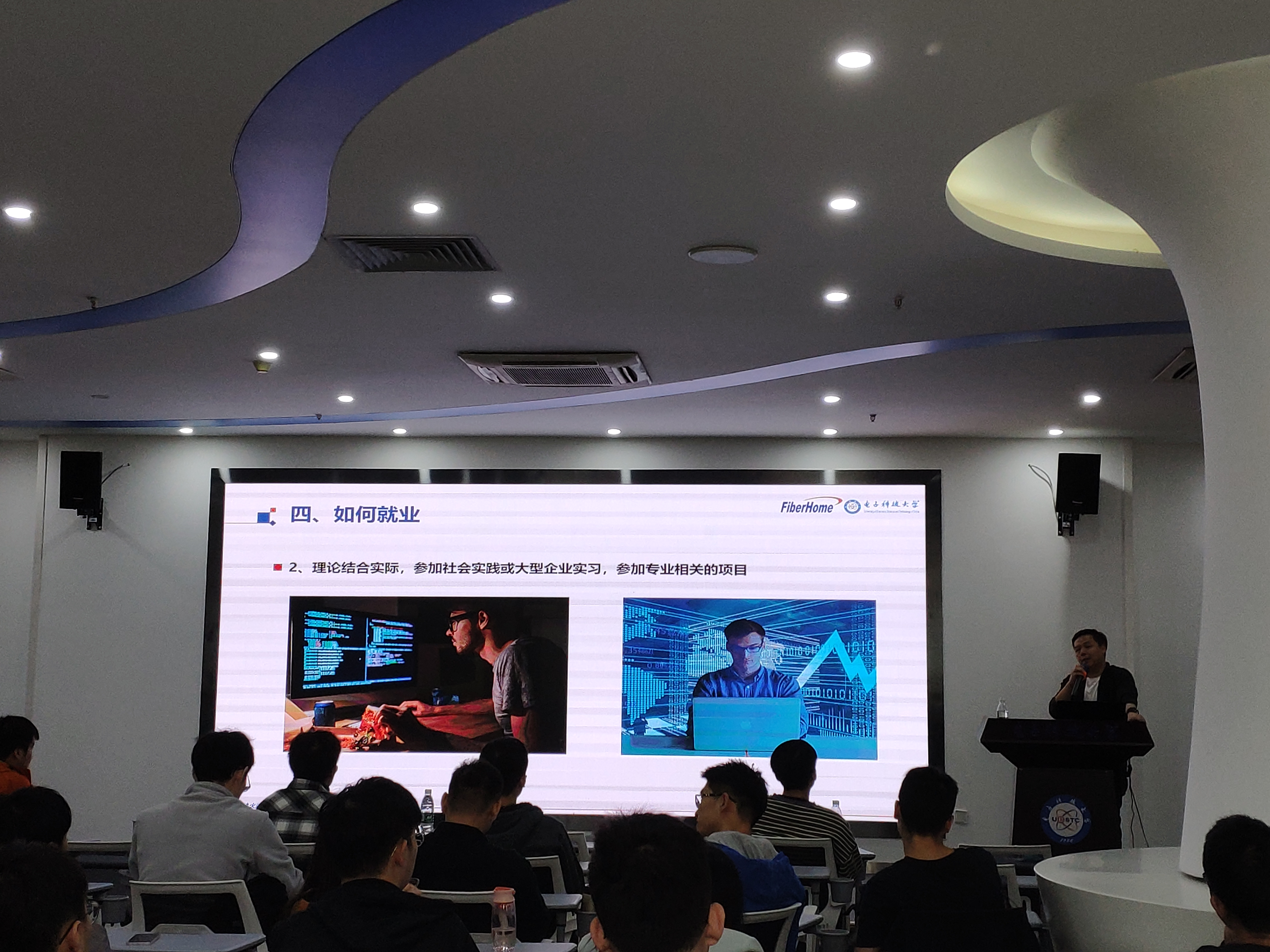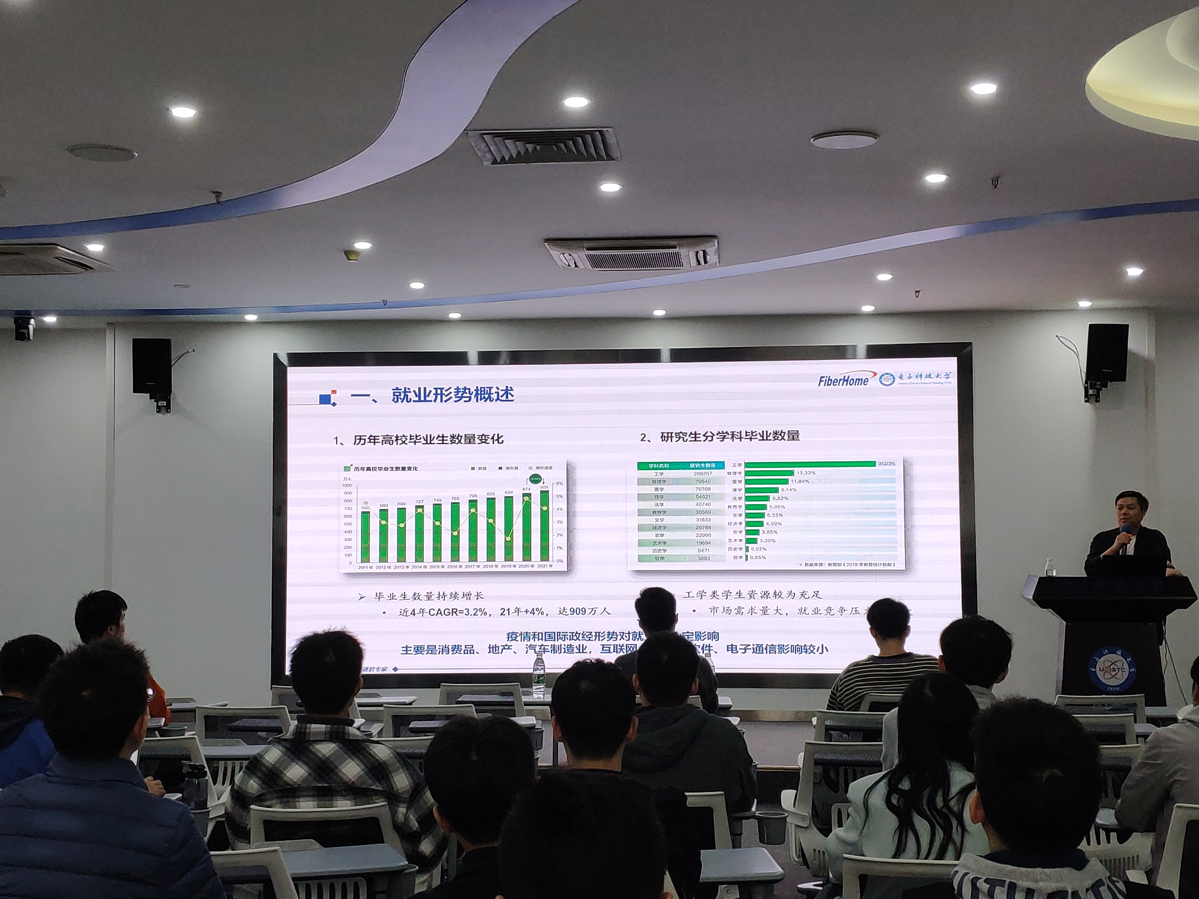 宣讲开始,王老师通过对历年高校毕业生数量变化、不同高校层次毕业生除就业外其他选择、整体毕业生首选企业类型等进行的大数据分析,给出了当今就业形势的概述。王老师指出,疫情和国际政经形势对就业是有一定影响的,尤其是对房地产、汽车制造等行业,而对游戏、软件、电子通信的影响较小。同时,他也提到,当今的毕业生找工作并不难,但找到心仪的工作也并不太容易。