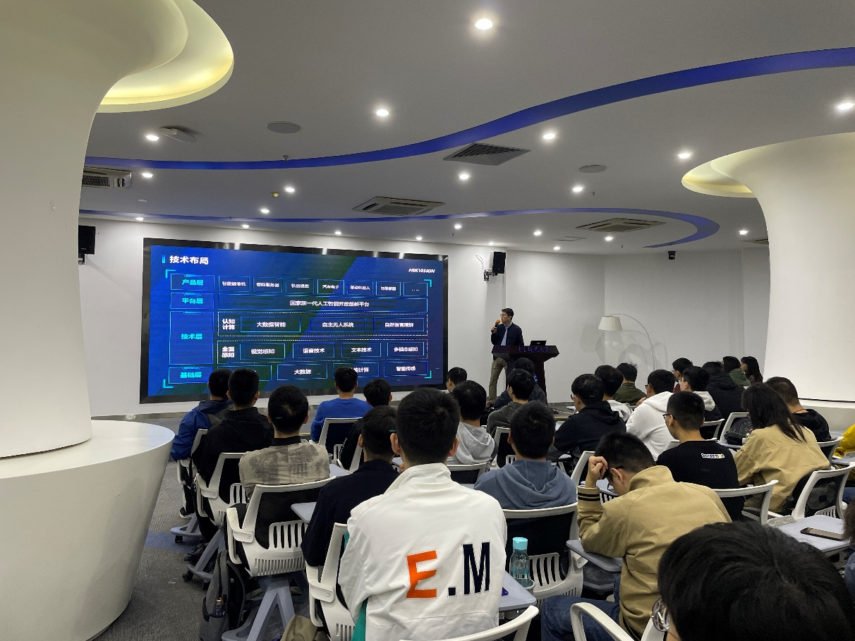 活动第一环节,车军老师为大家分享了人工智能算法应用。首先,车老师介绍了海康威视研究院的研究方向、技术布局。海康威视以视频为核心,业务聚焦于智能物联网、大数据服务和智慧业务,技术布局包含了基础层、技术层、平台层和产品层。紧接着,车老师为大家介绍了部分研究院在智能算法上的应用,利用黑光技术、AI超分辨率技术、AI降噪技术等,运用于拍照算法中,实现更高质量的图片拍摄。