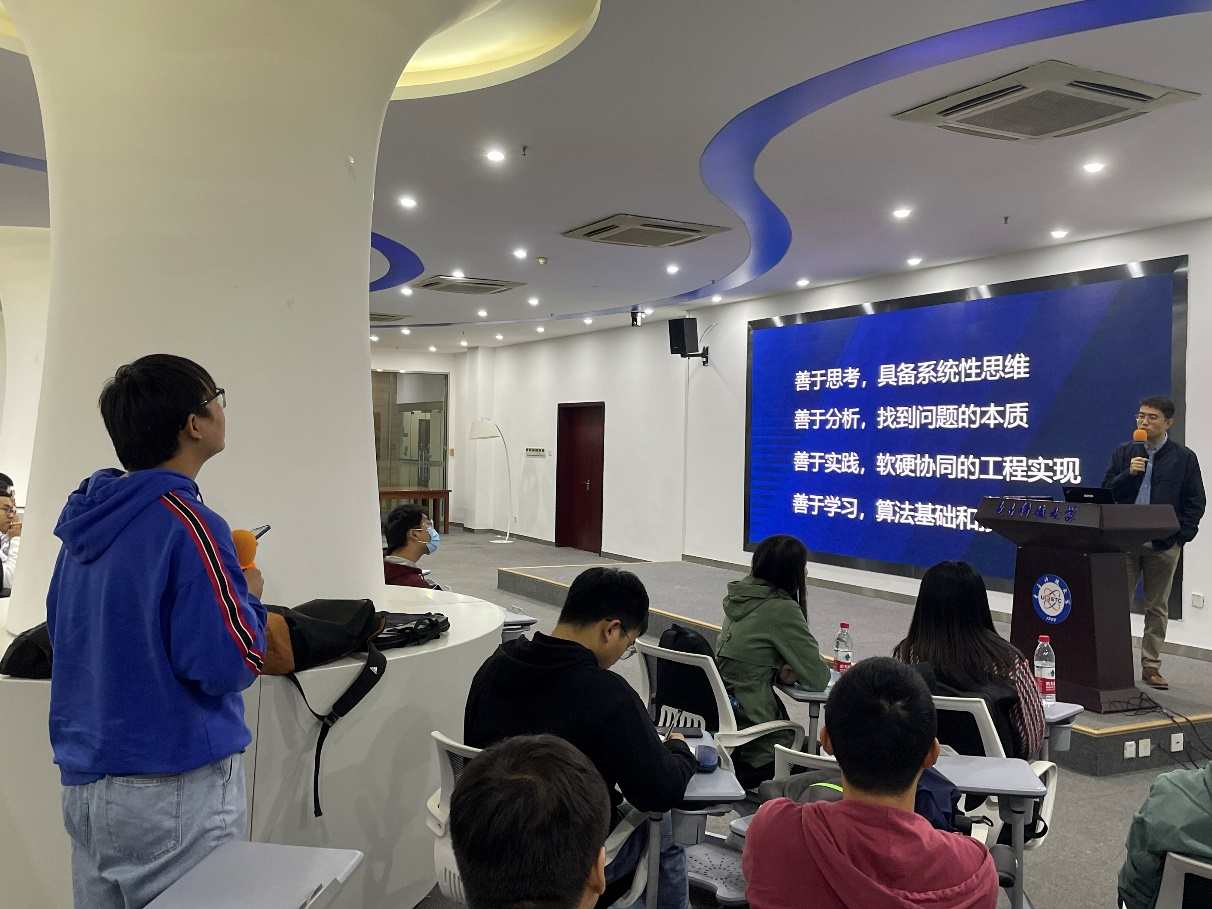 接着是问答环节,车老师针对同学们关于人工智能算法应用、硕士生与博士生就业的区别、从事算法岗位所需具备的条件等方面一一进行解答。通过互动,在场的同学对人工智能方向的就业前景、就业条件有了更进一步的了解,同时有了更加清晰的规划和更加明确的目标。