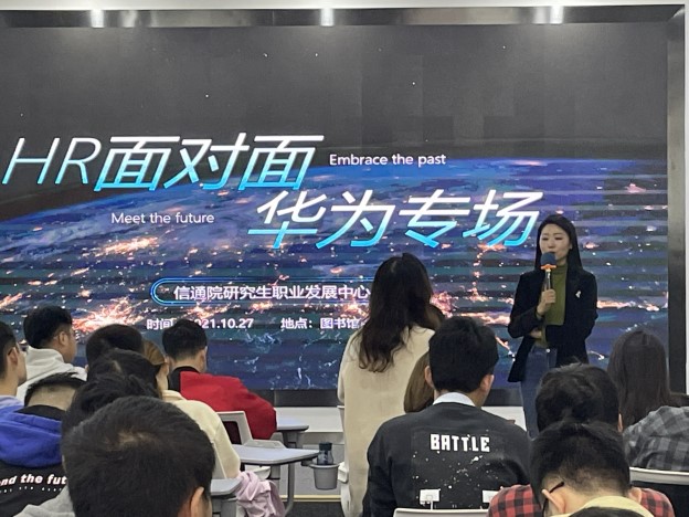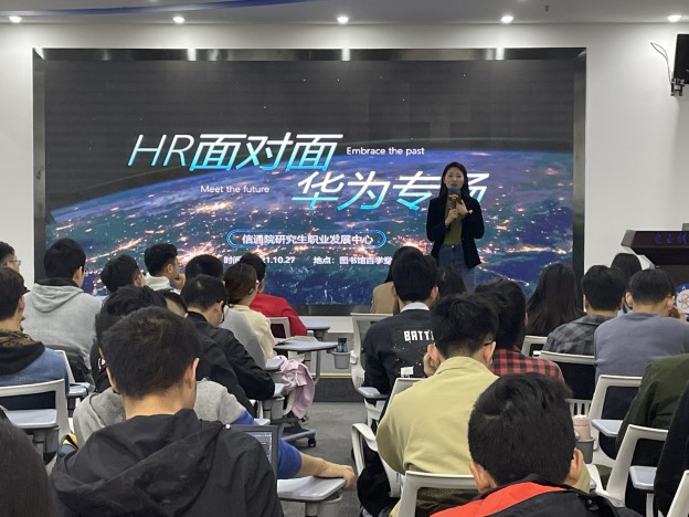 2021年10月27日,william英国中文研究生职业发展中心在图书馆二楼百学堂成功举办“HR面对面”之华为专场活动。本次分享会邀请到了华为技术有限公司西南地区招聘总监赵丽姝老师。赵老师以“扬帆校园,起航职场”为主题,从社会就业趋势,如何认识自我、如何成功求职等三个方面给同学们带来了精彩的分享。