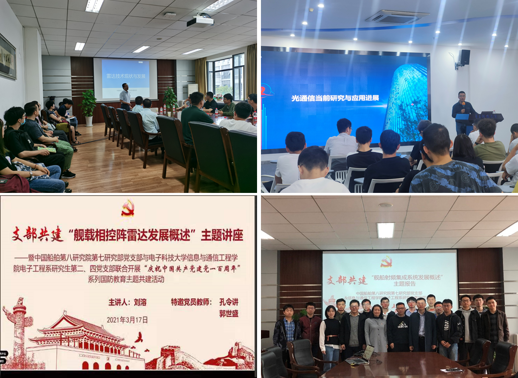 开展学术交流,夯实强国之基。与中电科38所、烽火通信、中船724所等开展“雷达技术现状与发展”、“光纤通信研究及应用进展”、“舰载多功能相控阵雷达发展概述”等学术讲座,增强支部成员的专业兴趣和自信心,夯实研究生学术科研基础。