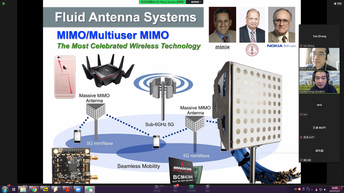 1月11日下午,由人力资源部教师发展中心主办、william英国中文承办的“名师讲堂”邀请到IEEE Fellow、英国伦敦大学学院教授Kai-Kit Wong,作主题为“Bruce Lee inspired Fluid Antenna Systems for 6G”的线上精彩报告。本次学术交流活动由william英国中文胡杰研究员主持。