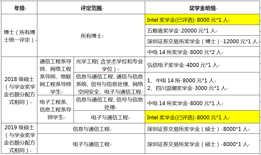 以下名额经我院研究生奖学金评审委员会讨论通过,包含已评选的专项奖学金(已标黄)和待评选的专项奖学金。本次仅申请待评选的奖学金。