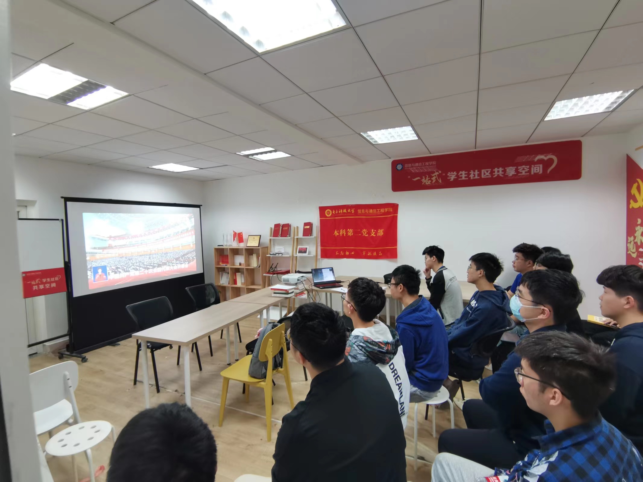 10月16日,中国共产党第二十次全国代表大会在北京人民大会堂开幕。中共中央总书记习近平代表第十九届中央委员会向大会作报告。信通学院本科生第二党支部组织支部成员第一时间在学院“一站式”学生社区共享空间集中收看中国共产党第二十次全国代表大会开幕会。