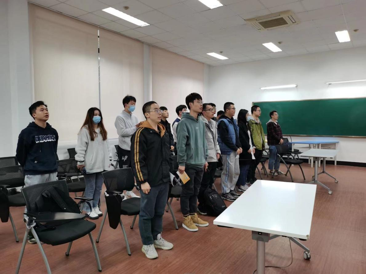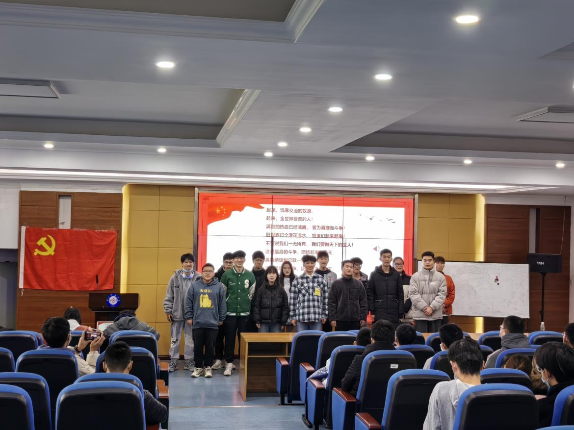 为期3周的教唱结束后,分党校举行“音乐微党课——《国际歌》考核环节”,由“星光”剧社成员担任评委,对12个发展对象小组的现场展示进行打分。