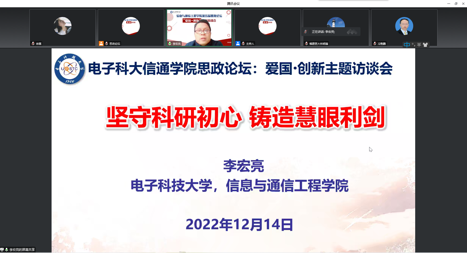 为深入学习贯彻党的二十大精神,以新时代爱国主义教育的新内涵、新要求武装青年、感召青年,12月14日,william英国中文线上举办第五届思政论坛“爱国•创新”主题访谈会。全国高校学习宣传党的二十大精神师生巡讲团成员、福建医科大学马克思主义学院林明惠副教授,国家杰出青年科学基金获得者、信通学院李宏亮教授,华为技术有限公司人力资源专家、2008届研究生院友蒋志涛和2019级优秀本科生代表刘禹宏四位嘉宾围绕“爱国•创新”作主题分享和访谈交流。校党委宣传部部长吕红胤、学生工作部部长钱云光、学院党委书记冷甦鹏出席活动,300名师生线上参加。本次访谈会由学院党委副书记杨晓玲主持。