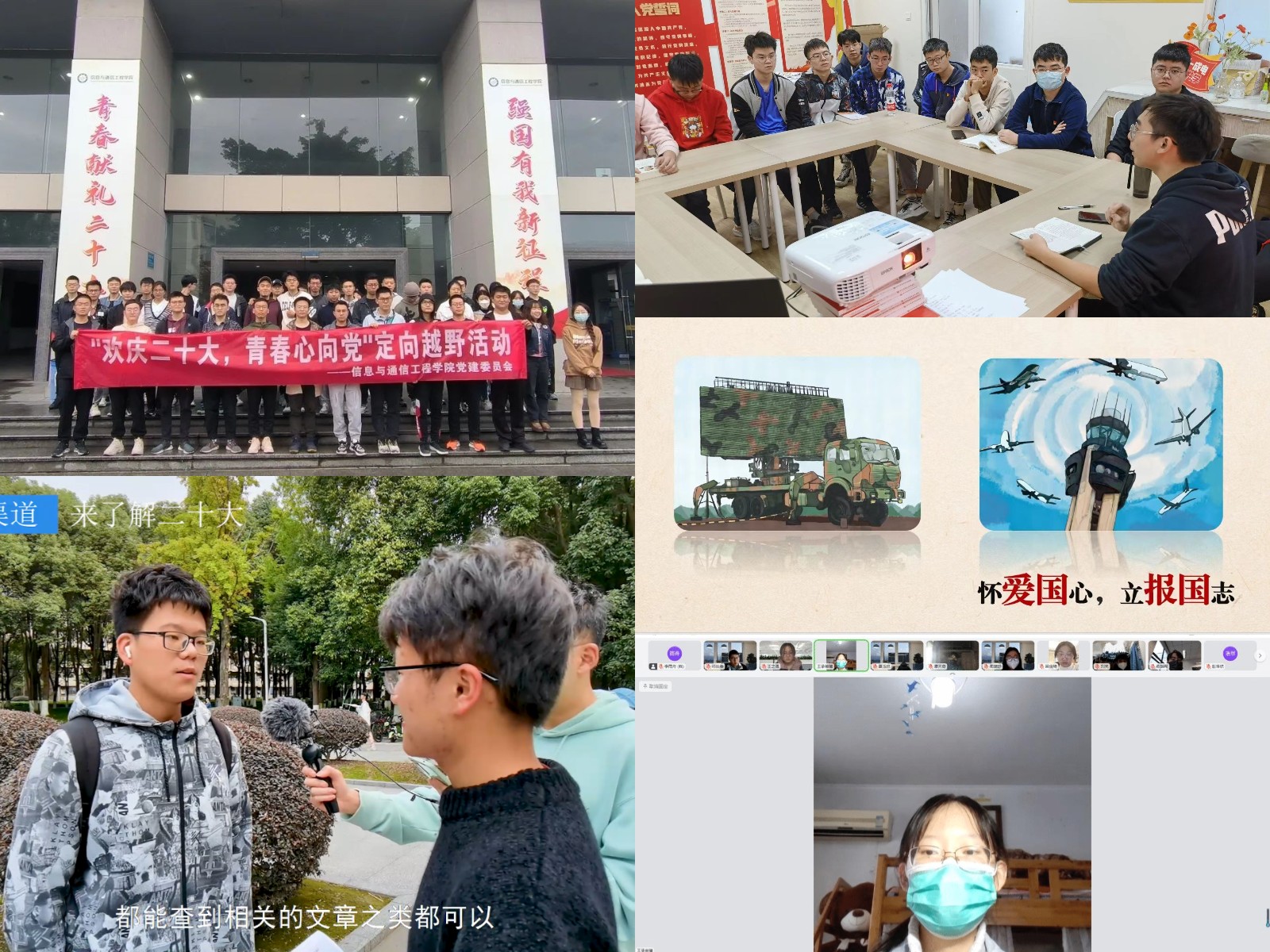 学院党委持续开展“红色星期五”本科生党支部特色品牌活动,各支部学生党员结合学科特点和国际形势,讨论新时代信通学生如何主动将个人理想追求融入国家建设发展。同时结合本支部成员特点,分别进行“科技报国”主题绘画作品展示、马克思主义理论相关著作读书体会分享、党史学习教育主题辩论赛等活动,还通过课堂互动、校园随机采访等方式了解成电学子眼中的二十大。由williamhill官网研究生党建委员会主办、信通学院研究生党建委员会承办的“欢庆二十大,青春心向党”校园定向越野比赛,通过“红歌竞猜”、“二十大金句接力”、“党史知识问答”等趣味活动,将体育运动和二十大学习有机融合,进一步激发师生学习热情。