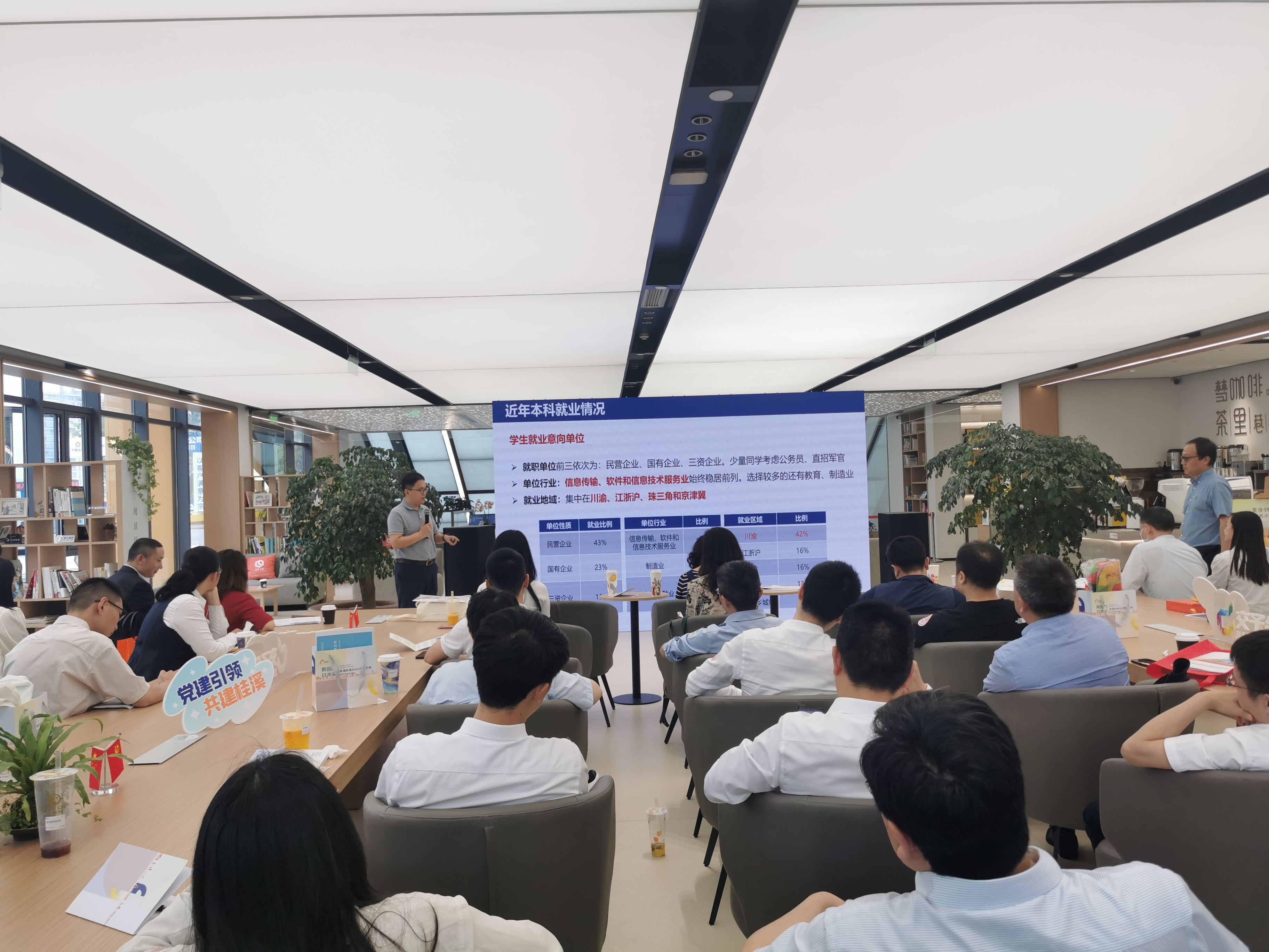 信息与通信党委副书记耿宝莹就推进高校与政府、企业在人才培养方面深度联动合作展开深入交流,向街道党建联盟成员中国成都海关等13家单位、33个企业综合党委推荐学院人才就业方向。