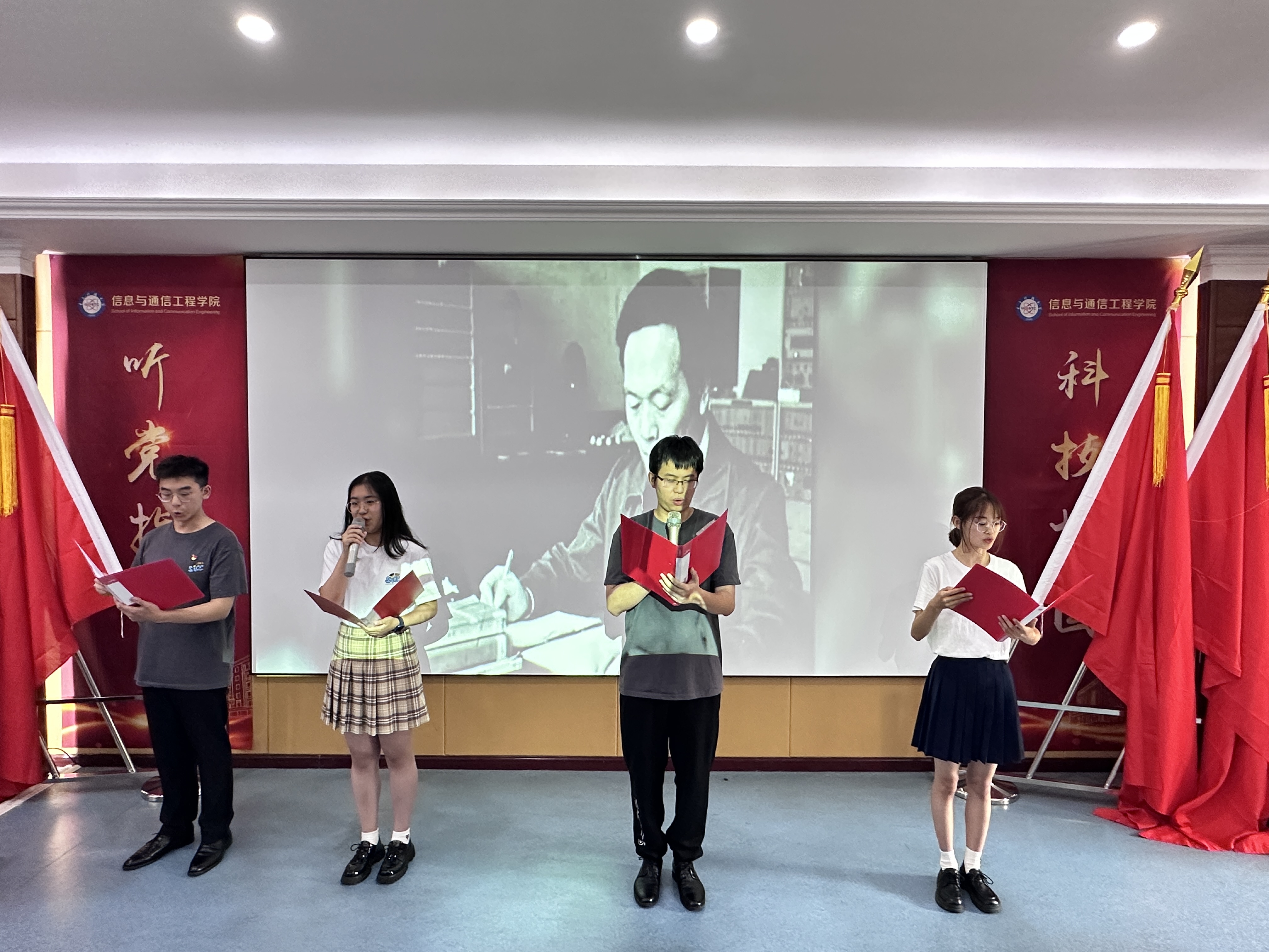 红色文化育人成果汇报展示环节,电子工程系研究生第五党支部书记陈涛代表支部进行优秀党支部风采展示,该支部连续三年荣获校级“先进研究生党支部”一等奖;毕业生党员、“星光”剧社林浩、赵可欣、刘禹宏、李姣璐带来原创红色诗歌朗诵《科技报国长征路》,深情讲述一代代成电人艰苦奋斗、攻坚克难的报国情怀。
