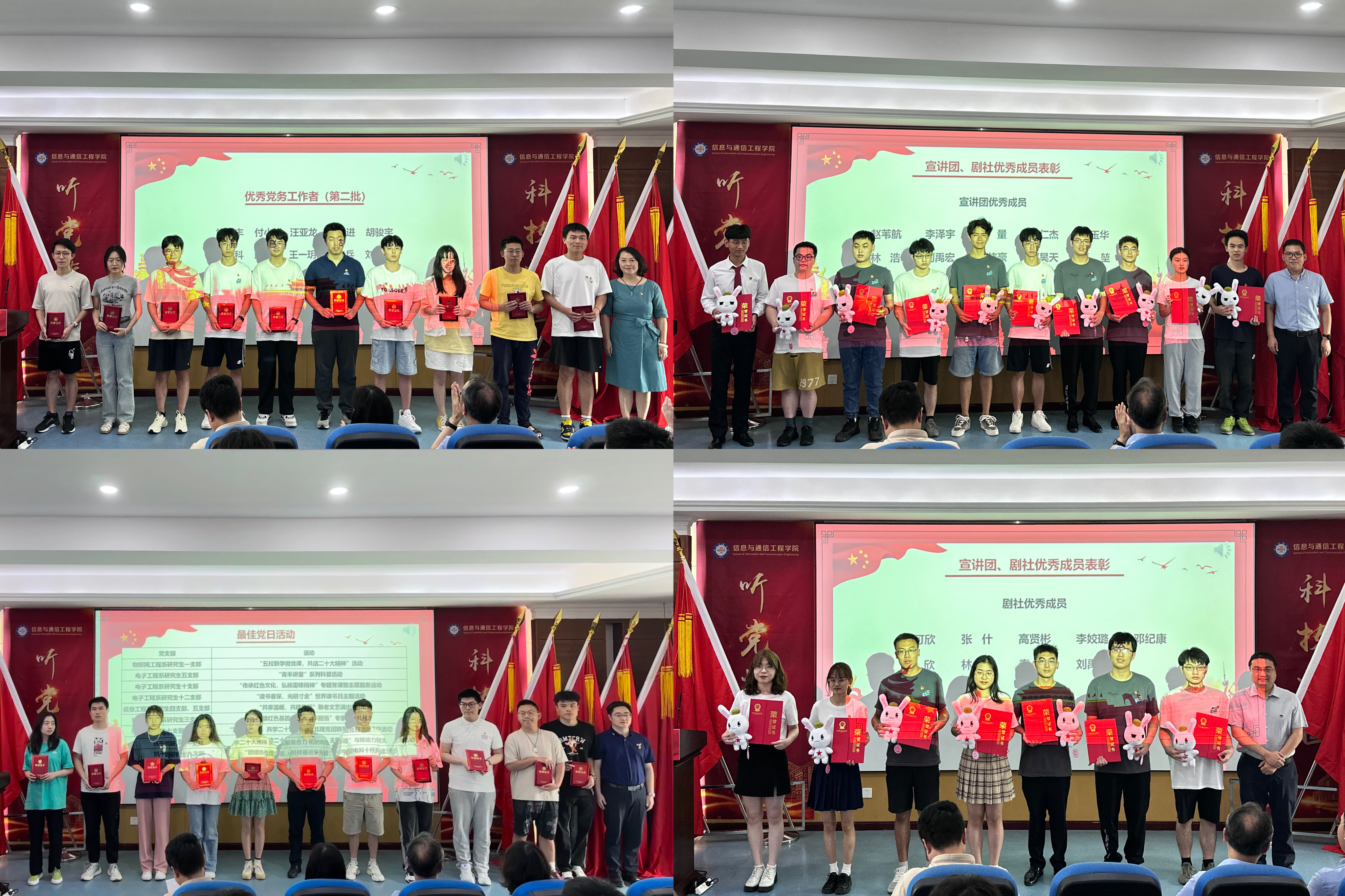 随后进行颁奖仪式,对20个先进党支部、50名优秀共产党员、20名优秀党务工作者、10个最佳党日活动、10个优秀党日活动以及“信仰之光”大学生新思想宣讲团和“星光”大学生红色文化原创剧社优秀毕业生进行表彰。