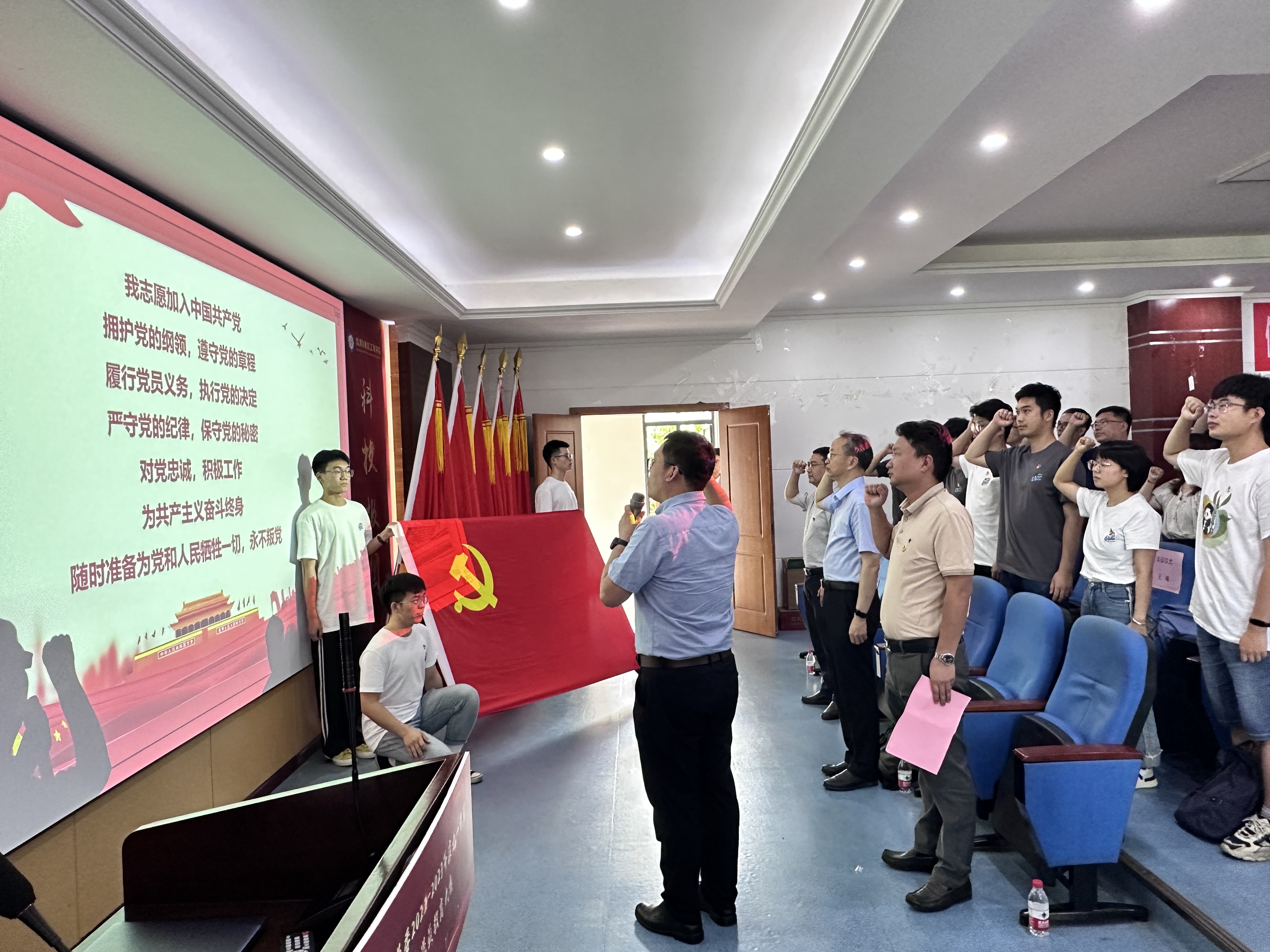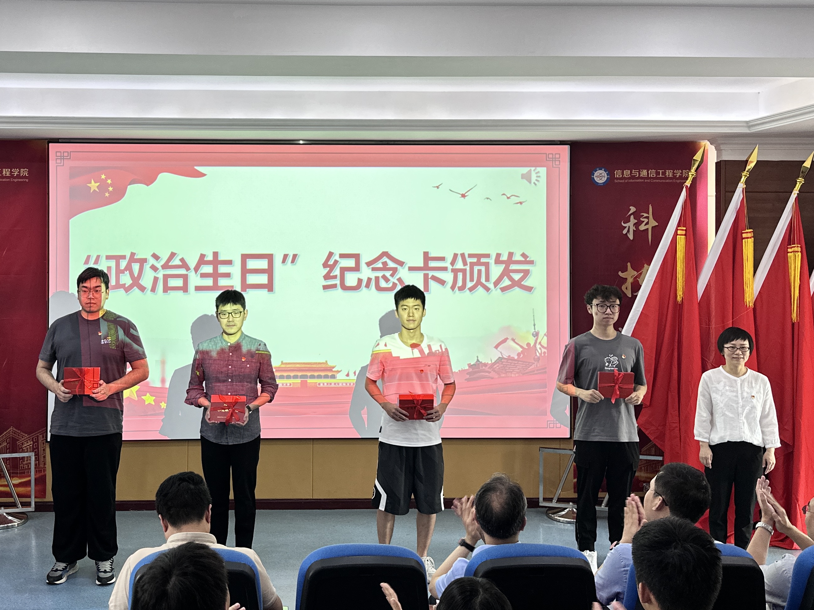 学院党委副书记何佳为新发展的党员代表颁发“政治生日”纪念卡;学院党委副书记耿宝莹带领全体党员重温入党誓词,进一步强化广大师生党员党的意识、党员意识。