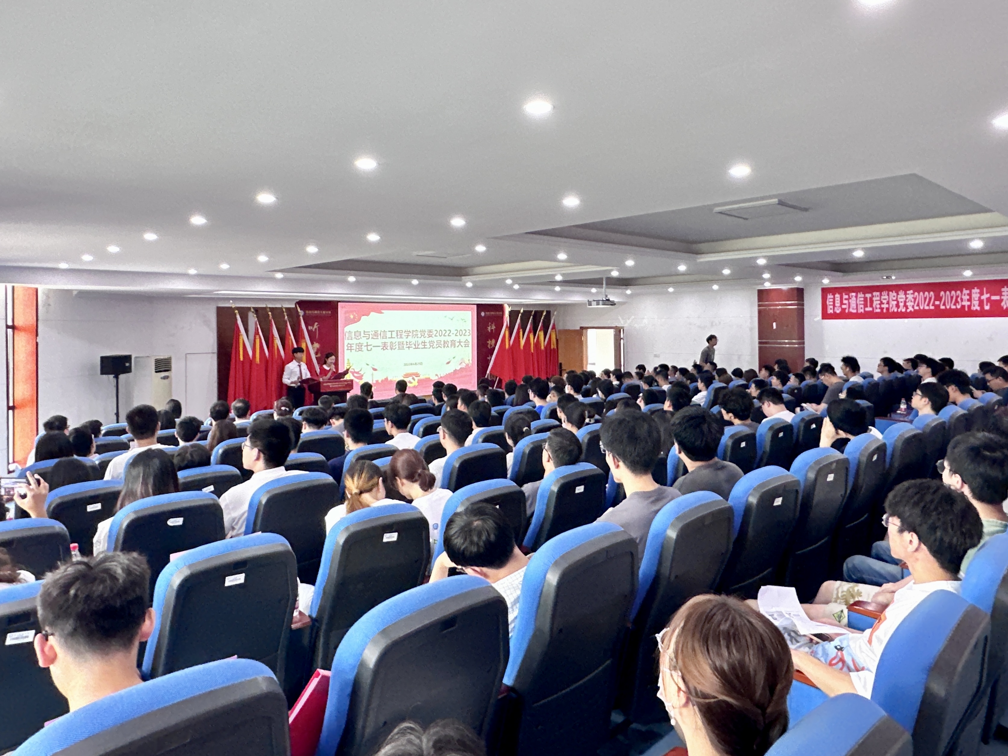 6月25日,william英国中文党委隆重举行2022-2023年度七一表彰暨毕业生党员教育大会。校党委组织部副部长杨晓玲、学生工作部副部长张琼、研究生工作部副部长郭正宇、信通学院和通信抗干扰全国重点实验室领导及师生党员代表参加大会。大会由学院2023届硕士毕业生党员代表贺怡然和本科毕业生党员代表赵苇航主持。