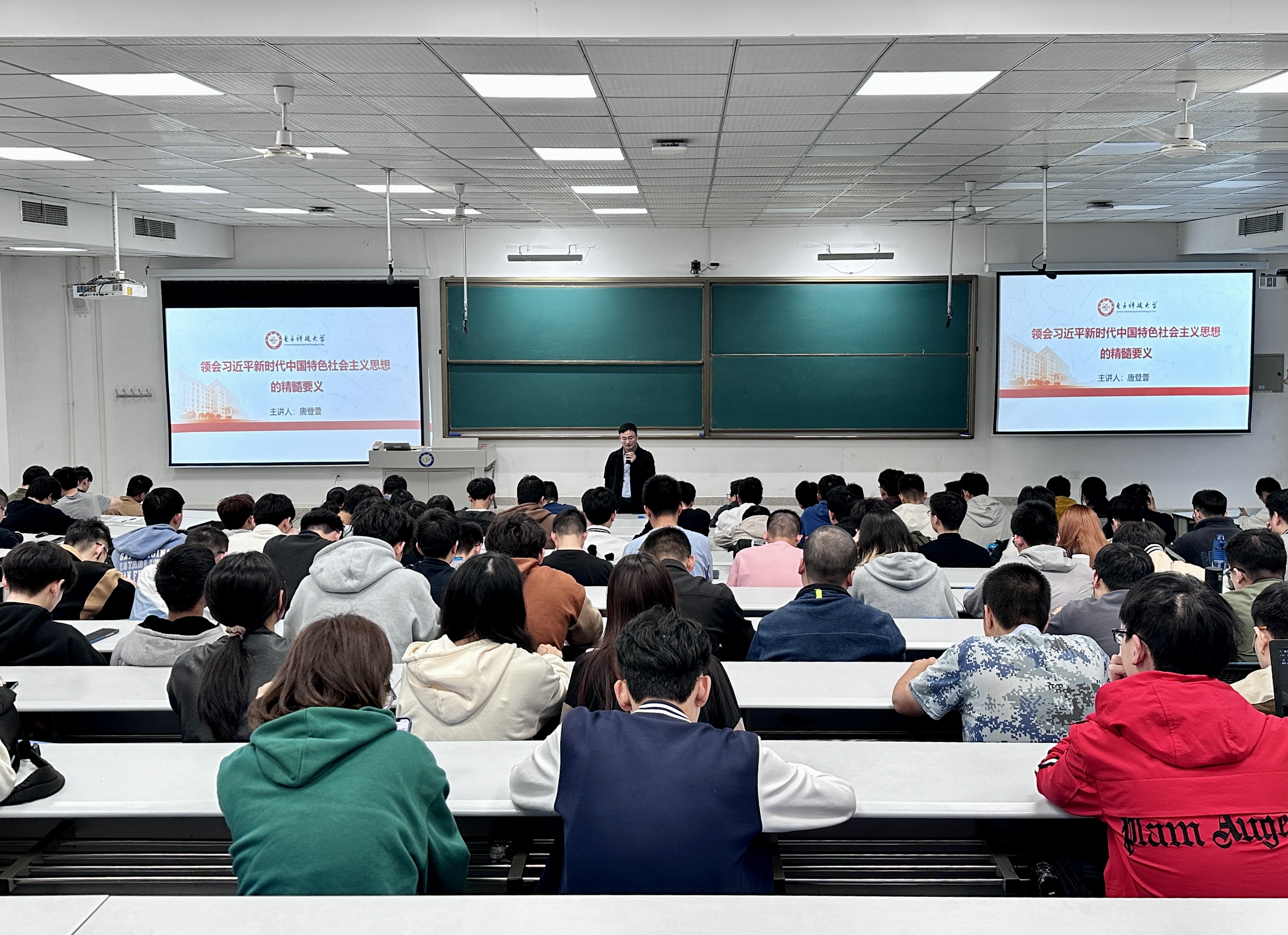 此次专题辅导报告以“领会习近平新时代中国特色社会主义思想的精髓要义”为题,分为“世界观”与“方法论”两个部分。唐登蕓从习近平新时代中国特色社会主义思想的概述讲起,从“十个明确”到“十四个坚持”再到“十三个方面成就”,强调中国特色社会主义好,归根结底是马克思主义行,是中国化时代化的马克思主义行。随后,唐登蕓向同学们阐明树立正确世界观的重要意义,并向同学们详细讲述了世界观的定义及世界观对于方法论的重要影响。