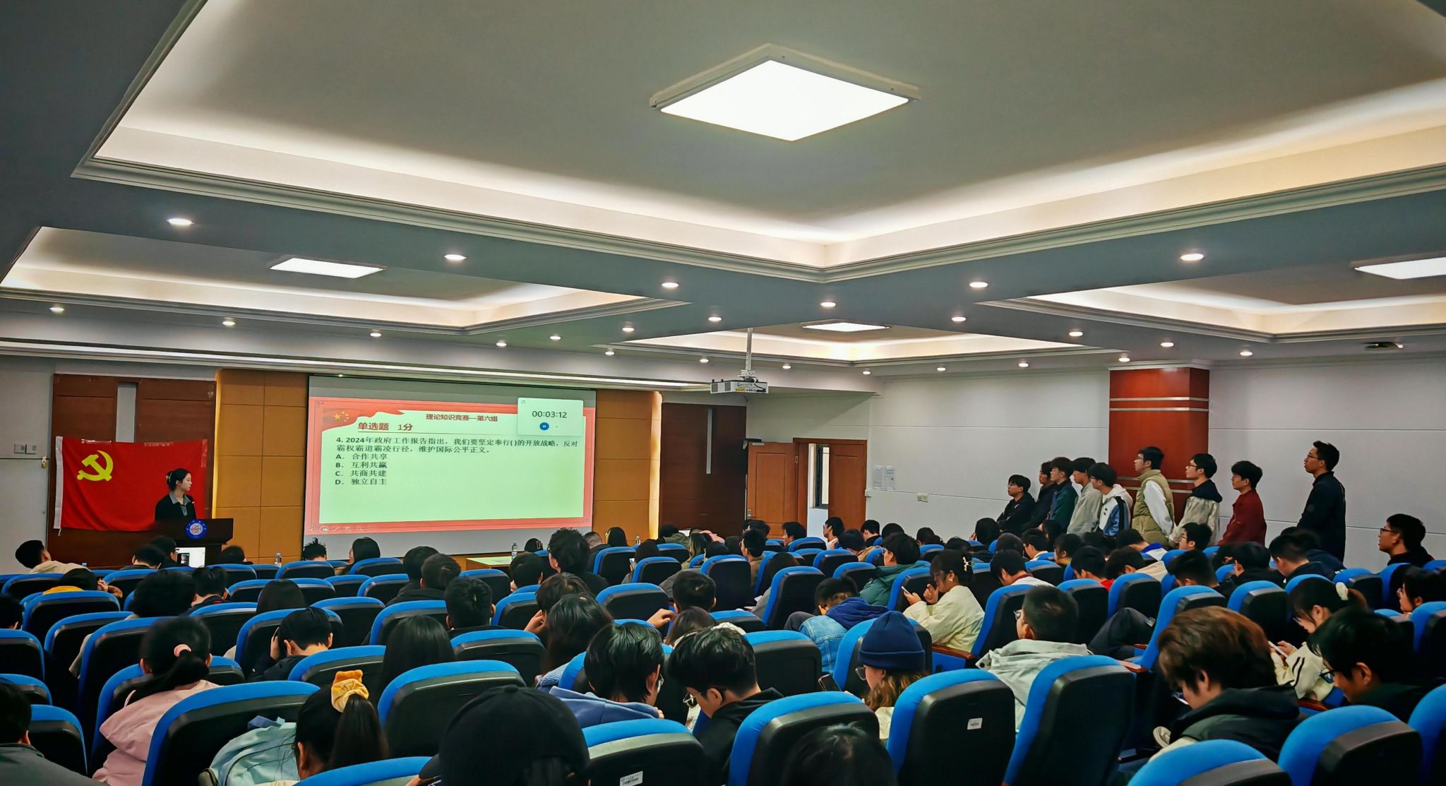 同学们还在现场完成理论知识竞答,现场气氛热烈,大家积极作答,体现了同学们扎实的理论基础,进一步加深了对党史知识的理解。