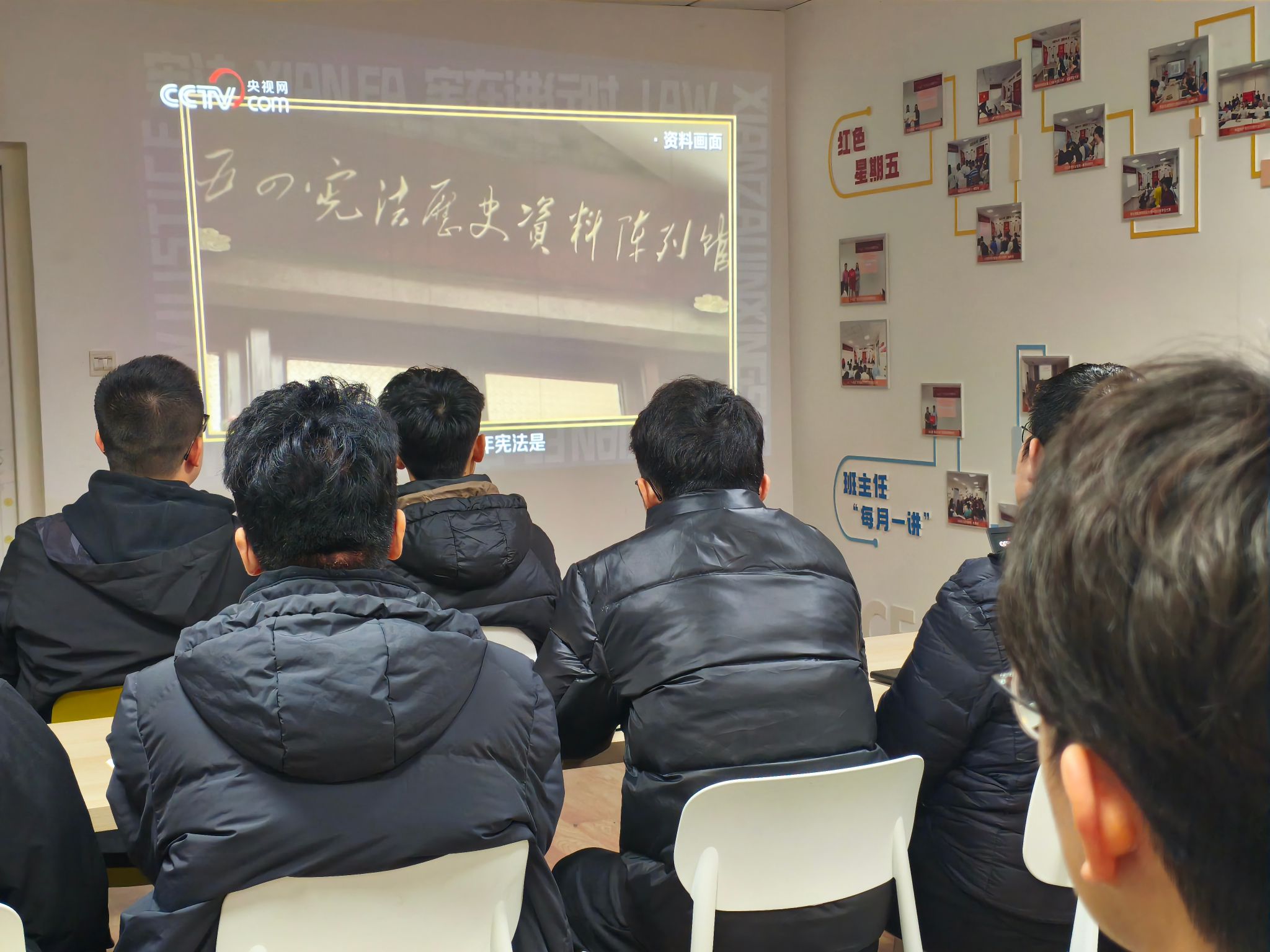活动伊始,辅导员罗荣老师和支部书记葛崇淋老师向支部党员介绍了宪法的重要性和核心内容,强调宪法作为国家的根本法,是治国安邦的总章程,并鼓励大家利用线上线下学习资源,更加深入全面地了解和学习宪法精神。随后,支部成员观看了央视网发布的“良法善治 同心同行|讲述宪法背后的故事”视频,通过讲述宪法背后的故事来强调宪法在国家治理中的重要性地位。视频还强调了优良法律和有效治理的重要性,并鼓励全社会共同参与宪法的学习和实践,以增强公众对宪法精神的理解认识,共同维护宪法权威,推动法治社会建设。