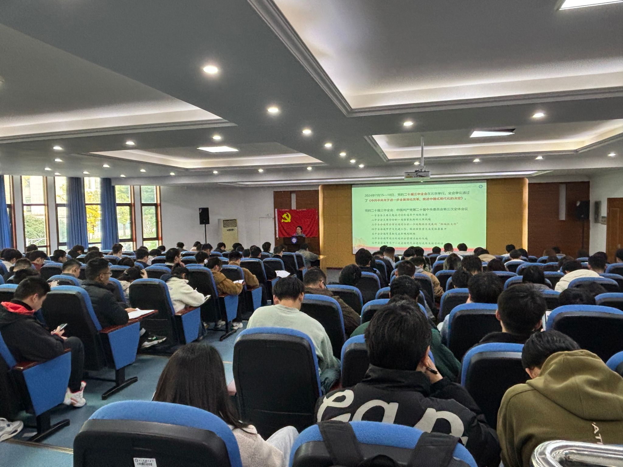 11月21日,信通学院党委副书记何佳为信通学院分党校180余名发展对象开展“学习党章党规,争做青年先锋”专题辅导报告。