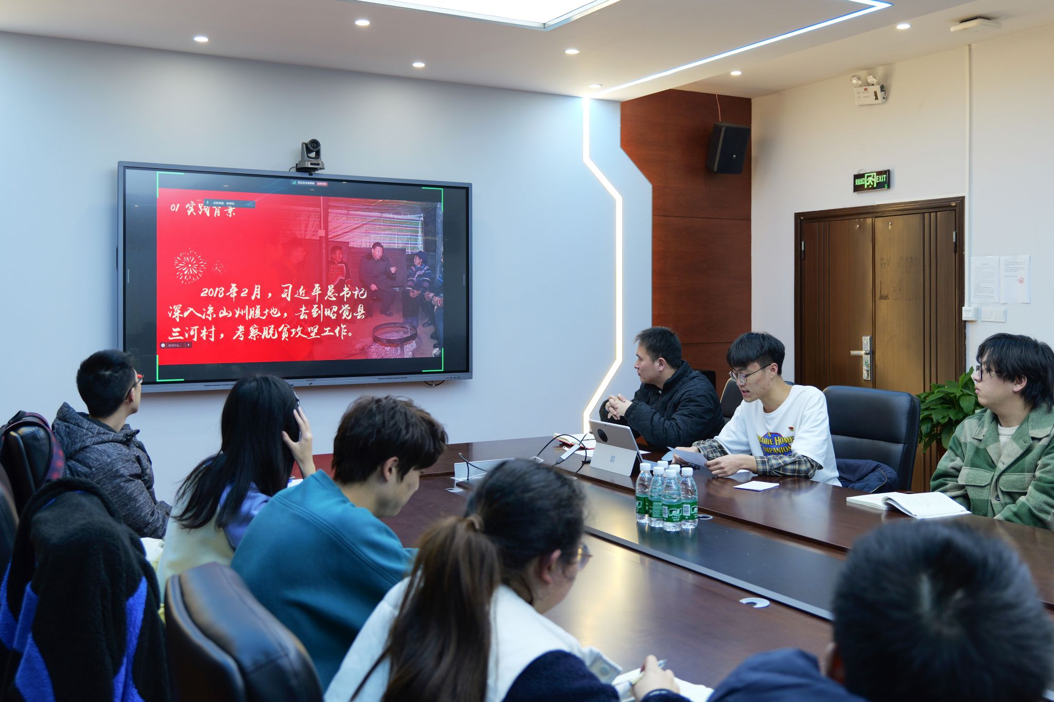 最后,与会人员集中学习了习近平主席发表的2025年新年贺词。大家纷纷表示很受鼓舞,倍感振奋!七支部党员李宇轩、沈浩然、姚笑凡分别从大国领袖念兹在兹的人民情怀、百年大党始终站稳人民立场、凝心聚力推进中国式现代化等角度,分享了对新年贺词的学习感悟。罗荣在活动总结时谈到,作为高校青年学生党员要永葆奋斗精神,努力学习进步,增强综合素质,为新时代新征程的伟大事业自觉挺膺担当,贡献青春力量。