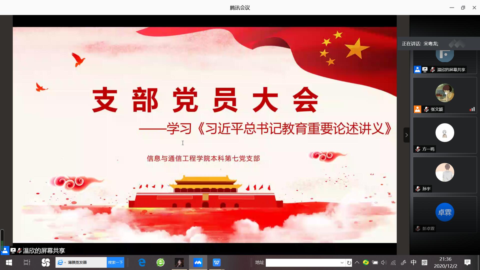 为深入学习贯彻落实习近平总书记关于教育的重要论述,学院本科第五和第七党支部组织了专题学习教育活动。 学习以线上线下,小组研学和自主学习形式进行。在线下,个人自主学习、以党小组为单位交流学习、以党支部为单位开展支部大会分享学习心得等多种学习方式围绕《讲义》展开了学习交流。 在线上,支部党员们每天轮流在支部QQ群内发布来自学习强国、人民日报、习近平总书记系列讲话等相关学习资料,并在群内形成了良好的学习氛围,大家在探讨中不断学习、共同进步。