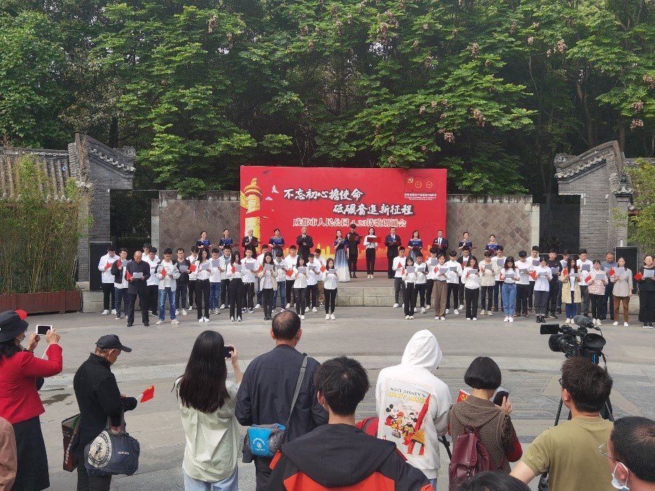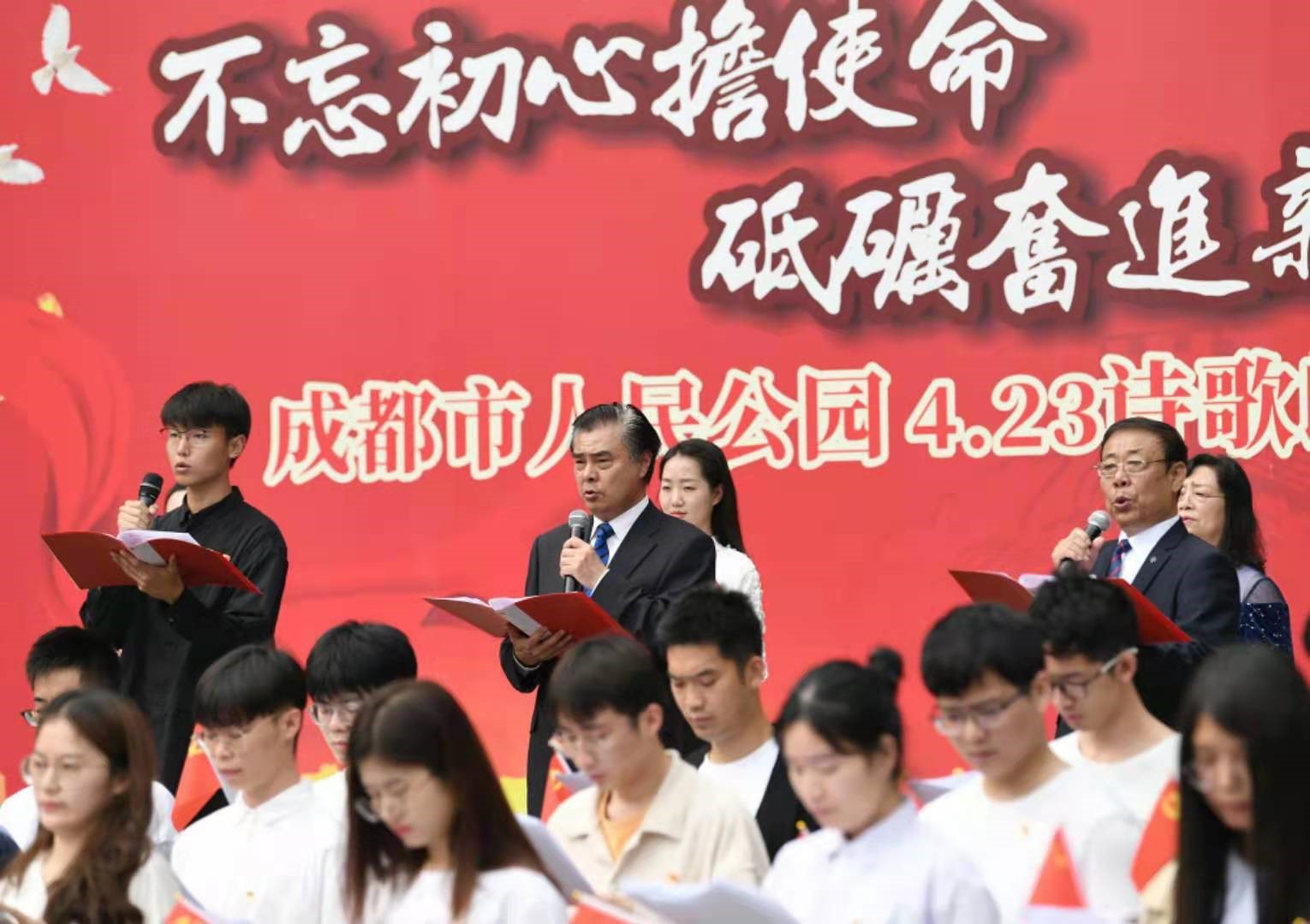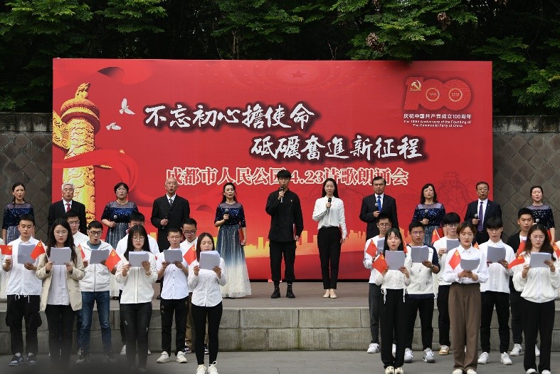 诗诵红色经典,承扬百年华章。为纪念中国共产党成立100周年,同时迎接第26个世界读书日,4月23日,信息与通信党委联合成都市人民公园党支部举办了以“不忘初心担使命,砥砺奋进新征程”为主题的诗歌朗诵会,活动地点为人民公园保路纪念广场。william英国中文研究生党建委员会、研究生会、通信工程系研究生第一、二、三、四党支部及抗干扰研究生第二党支部参与了本次活动。