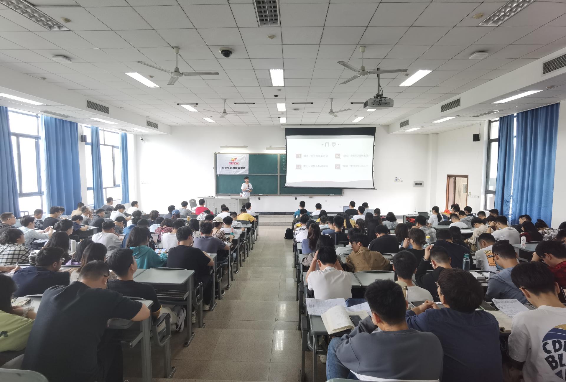 赵苇航通过溯源百年党史,带领大家一同领略了中华民族在党的领导下,从“弱国无外交”到拥有外交的底气,最终实现大国外交的百年征程,并最终落脚到当代青年的责任担当。