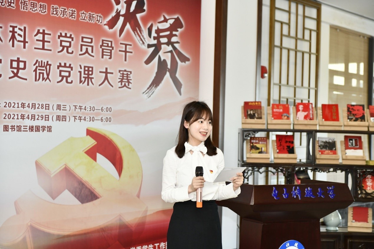 学校的本科生党员骨干党史微党课大赛决赛于4月28、29日下午在图书馆三楼国学馆举行,第七党支部的王一竹同学以《走长征路,歌奋斗史》为主题,通过宣讲和红歌相结合的方式,带领大家一起回望革命先辈们在苦难辉煌岁月中如何坚持初心与使命,并鼓励成电青年要弘扬长征精神,书写精彩人生,最终获得微党课大赛一等奖。