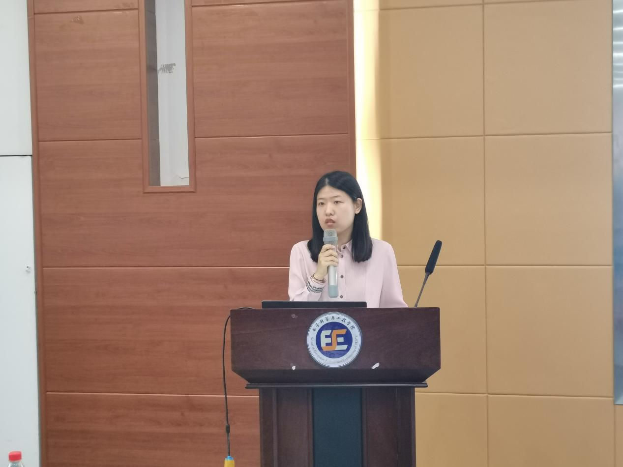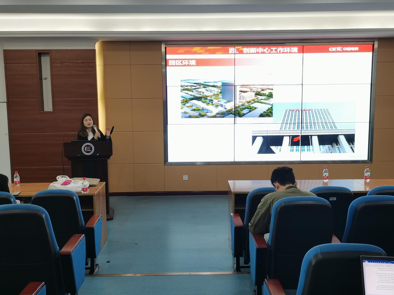 接着,终端技术部算法工程师张德悦校友和同学们分享了她在创新中心所从事的研究工作和成长历程。她提到“在中电科从事通信相关的技术研究,当看到某型装备亮相时,内心有一种独特的自豪感和责任感,这是在其他地方工作所体会不到的”。校友故事分享结束后,人事助理马晓卓同志介绍了创新中心的相关招聘政策,她从园区环境、人才发展、职业通道、薪酬组成、落户政策、岗位需求、招聘流程等方面对招聘工作进行了详细的介绍。