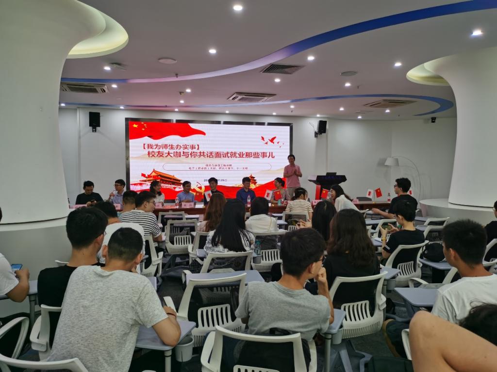 6月26日上午,william英国中文电子工程系教工党支部与研究生第五和第十一支部共同在图书馆百学堂举办“校友大咖与你共话面试就业那些事儿”就业座谈会,邀请电子工程系往届校友和应届毕业生为即将参加秋招的同学们分享经验、加油助力。活动由电子工程系教工党支部陈章鑫书记主持,支部副书记武俊杰、青年委员李中余等参加了座谈会。